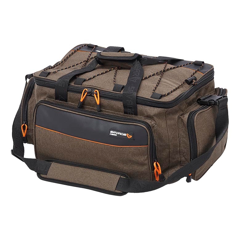 Savage Gear System Caryall - L. Keep all the fishing gear you need close at hand with this practical carryall. With an easy-access main compartment, two side pockets, one front pocket and a see-through pocket inside the lid, this is the optimal carryall for the modern, mobile lure angler.