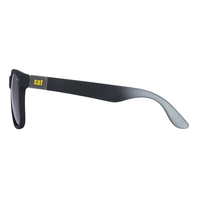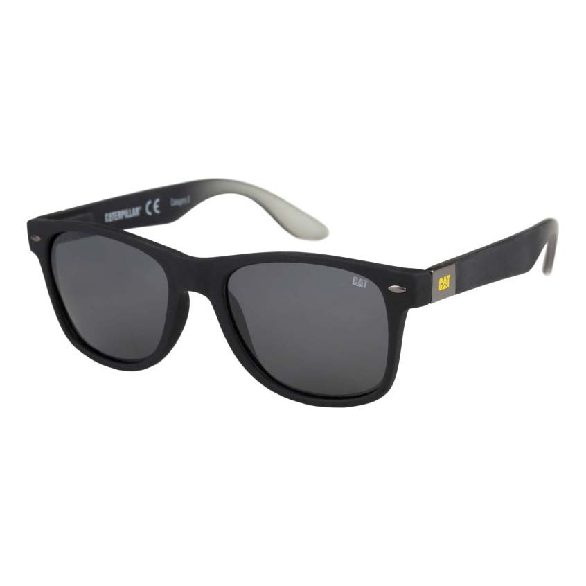 CAT Blinding Sunglasses. Classic wayfarer front shape featuring machine-pressed metal logo plaque and integrated spring hinges for easy wearing. Fully RX'able. Polarized as standard.