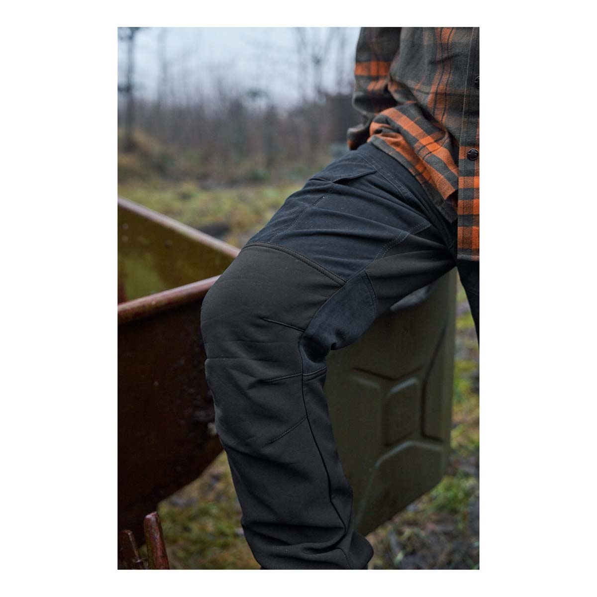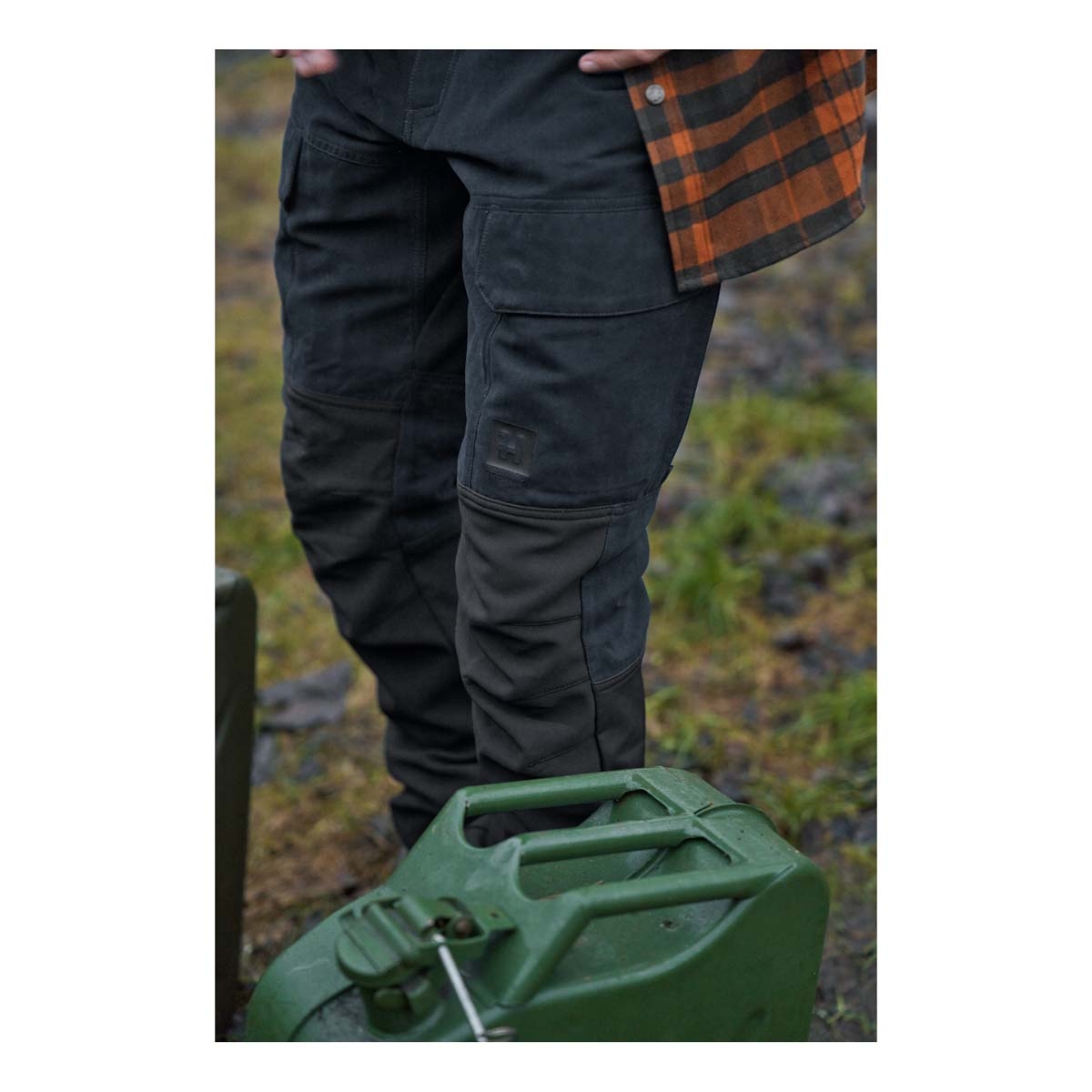 Harkila Scandinavian Trousers - Salute/Anthracite. The Härkila Scandinavian trousers combine a softness that allows you to stalk in silence, with a robustness that makes them suitable for gamekeeping and other outdoor activities throughout the year. Extremely comfortable to wear, they have a range of useful features, including ventilation zips, phone and cartridge holder, silent magnetic pocket closures and more.