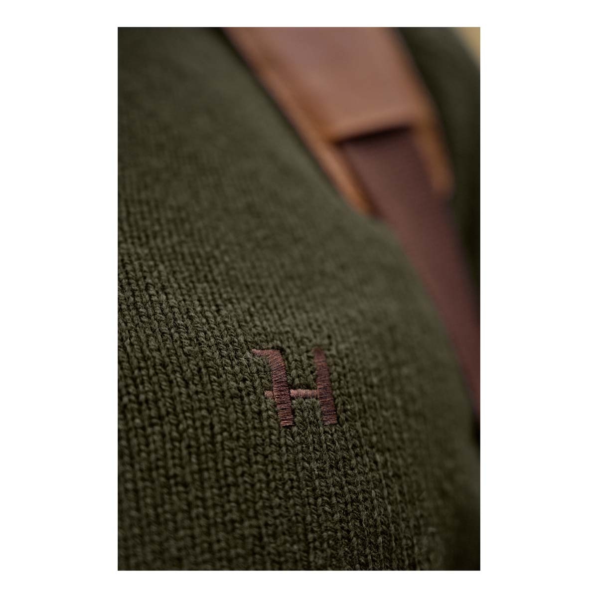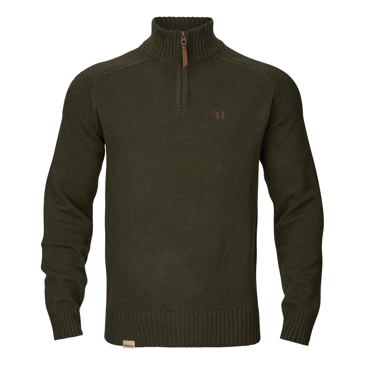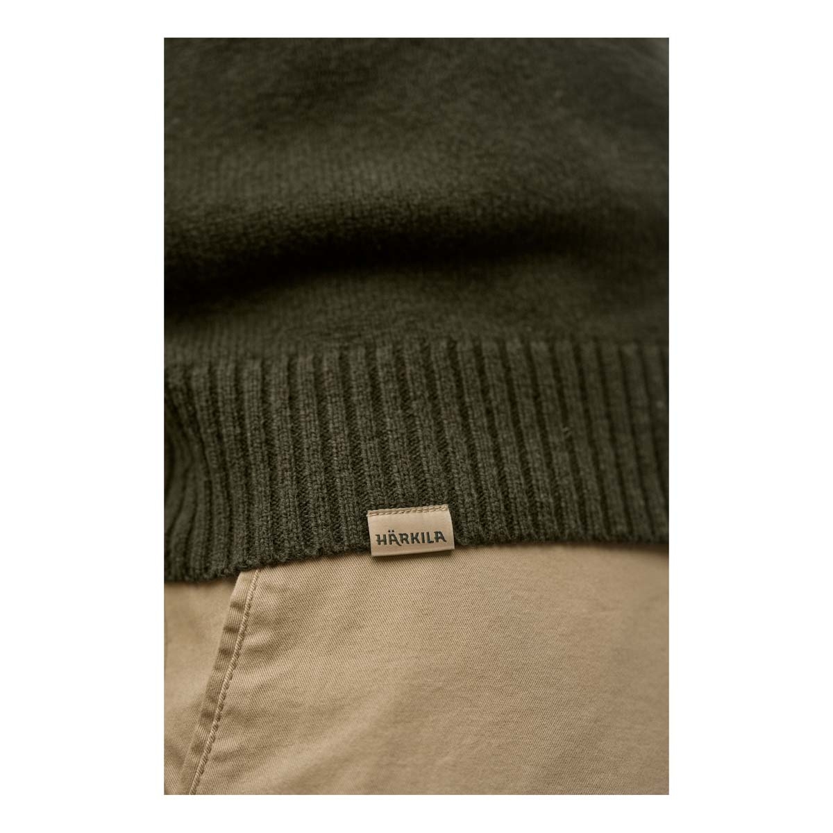 Harkila Vincent Merino Half Zip Pullover - Rosin. Our Vincent Merino Half Zip Pullover is designed for the shooter who value warmth and comfort. This pullover is crafted from pure, mulesing-free Merino wool and offers a soft feel and exceptional temperature-regulating properties that adapt to your body's needs, keeping you comfortable in varying conditions. The pullover features a high zip neck and a moss stitch detail on the shoulders for a contemporary touch. The microsuede chin saver behind the zip enhances comfort during wear. Ribbing at the collar, cuffs and bottom hem effectively blocks out the cold, making it an excellent choice for chilly days in the field. Details such as a classic leather zip puller, a subtle logo on the chest and a discreet flag label elevate the overall aesthetic. The raglan sleeves and contrast knit pattern on the shoulders provide a functional yet stylish fit, making the Vincent Merino Half Zip Pullover a valuable addition to the seasoned shooter’s wardrobe.