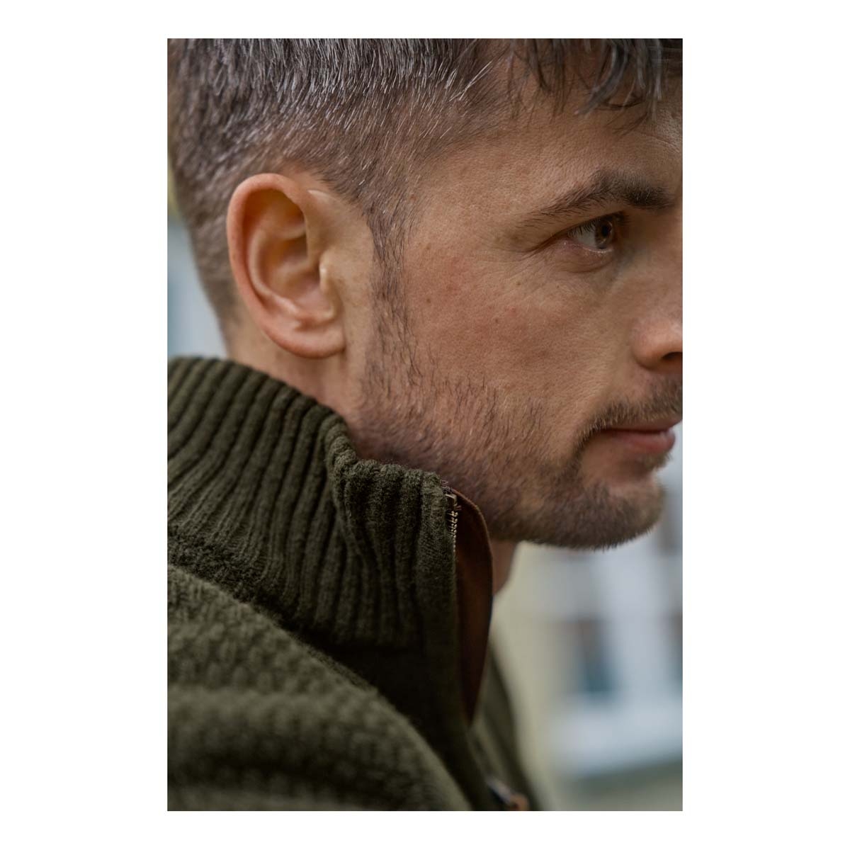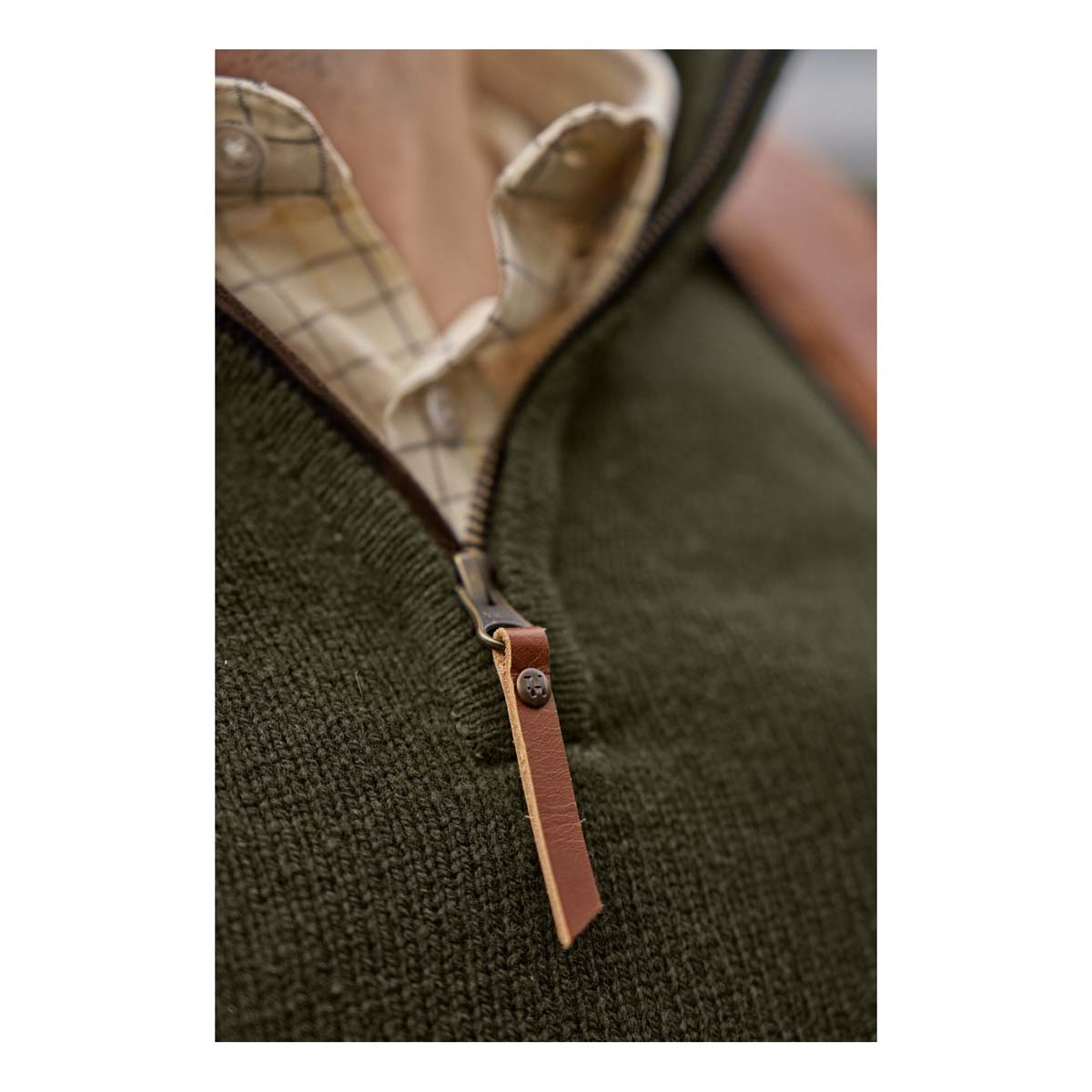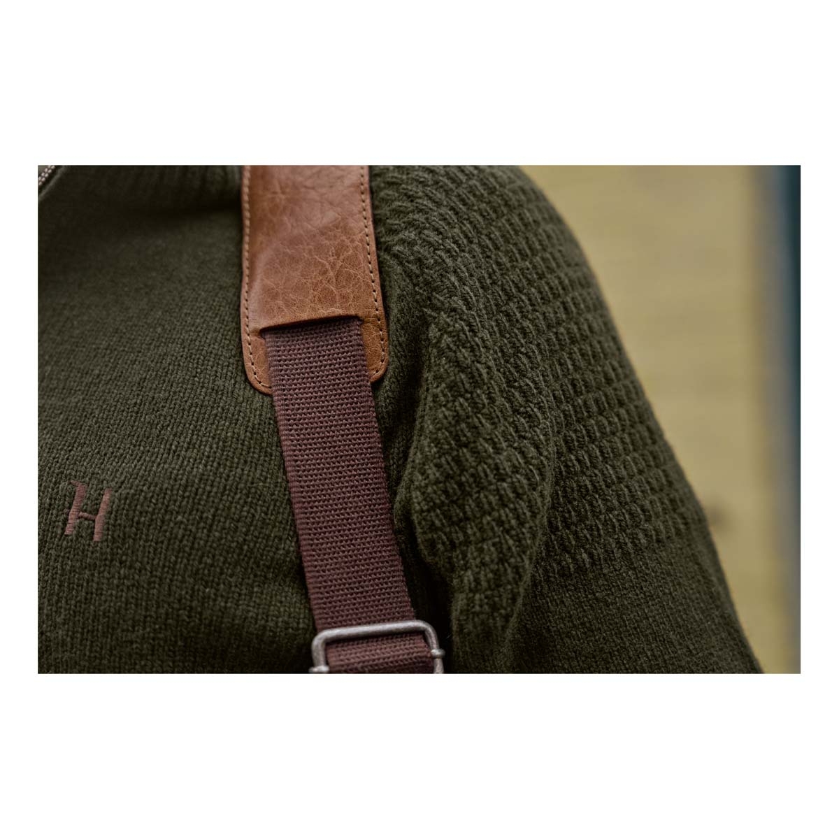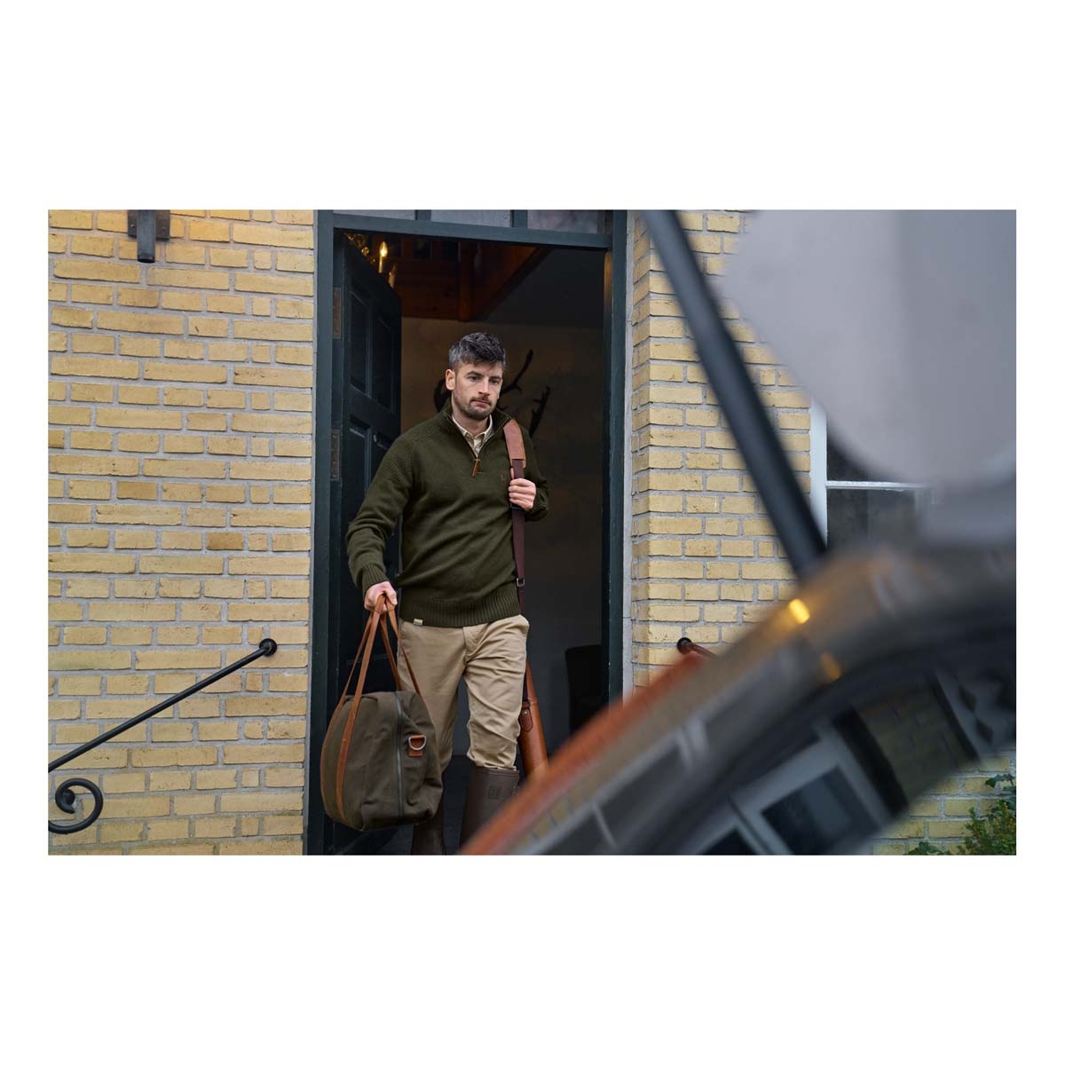Harkila Vincent Merino Half Zip Pullover - Rosin. Our Vincent Merino Half Zip Pullover is designed for the shooter who value warmth and comfort. This pullover is crafted from pure, mulesing-free Merino wool and offers a soft feel and exceptional temperature-regulating properties that adapt to your body's needs, keeping you comfortable in varying conditions. The pullover features a high zip neck and a moss stitch detail on the shoulders for a contemporary touch. The microsuede chin saver behind the zip enhances comfort during wear. Ribbing at the collar, cuffs and bottom hem effectively blocks out the cold, making it an excellent choice for chilly days in the field. Details such as a classic leather zip puller, a subtle logo on the chest and a discreet flag label elevate the overall aesthetic. The raglan sleeves and contrast knit pattern on the shoulders provide a functional yet stylish fit, making the Vincent Merino Half Zip Pullover a valuable addition to the seasoned shooter’s wardrobe.