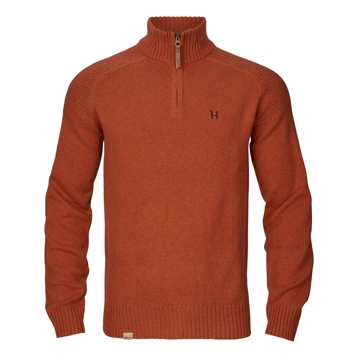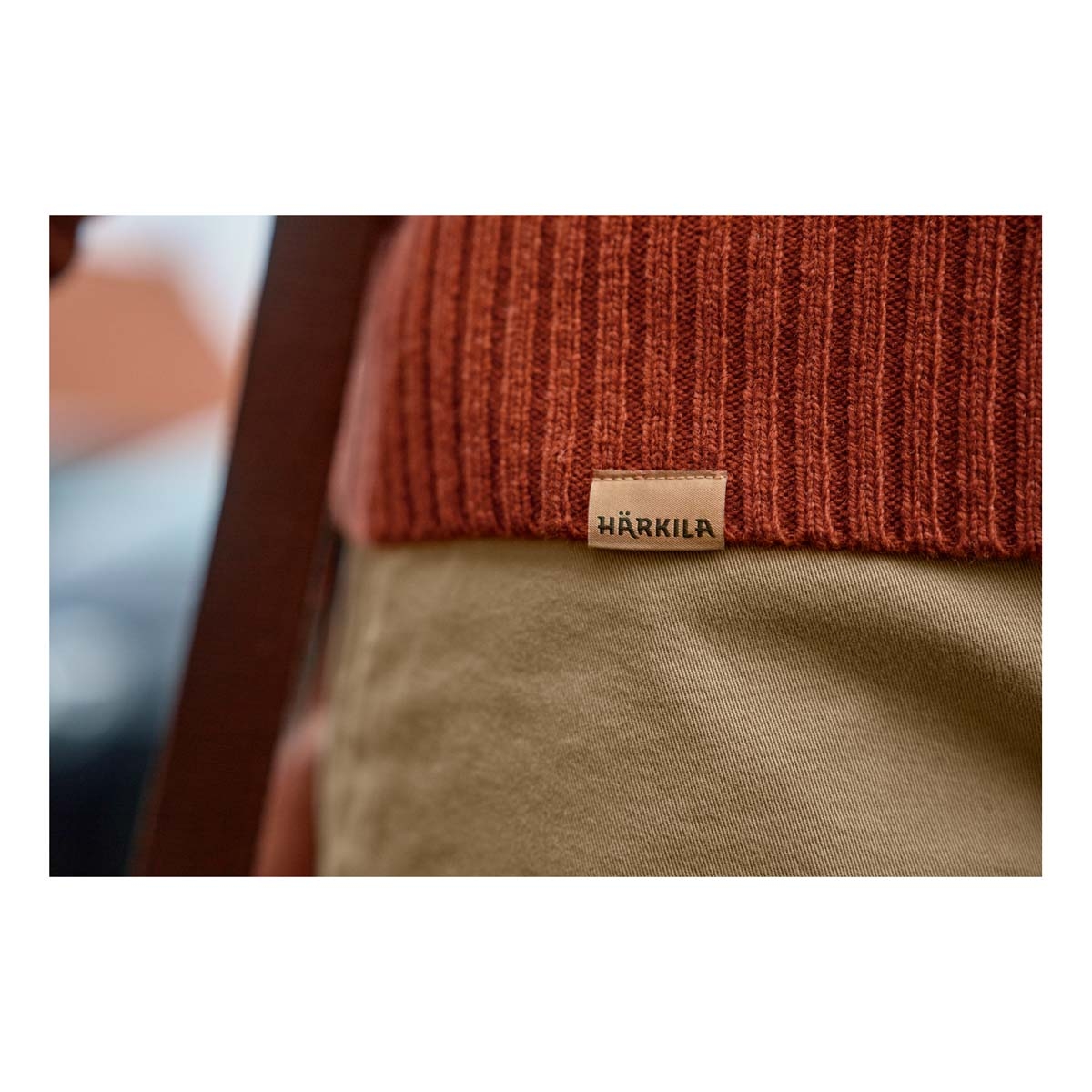 Harkila Vincent Merino Half Zip Pullover - Bombay Brown. Our Vincent Merino Half Zip Pullover is designed for the shooter who value warmth and comfort. This pullover is crafted from pure, mulesing-free Merino wool and offers a soft feel and exceptional temperature-regulating properties that adapt to your body's needs, keeping you comfortable in varying conditions. The pullover features a high zip neck and a moss stitch detail on the shoulders for a contemporary touch. The microsuede chin saver behind the zip enhances comfort during wear. Ribbing at the collar, cuffs and bottom hem effectively blocks out the cold, making it an excellent choice for chilly days in the field. Details such as a classic leather zip puller, a subtle logo on the chest and a discreet flag label elevate the overall aesthetic. The raglan sleeves and contrast knit pattern on the shoulders provide a functional yet stylish fit, making the Vincent Merino Half Zip Pullover a valuable addition to the seasoned shooter’s wardrobe.