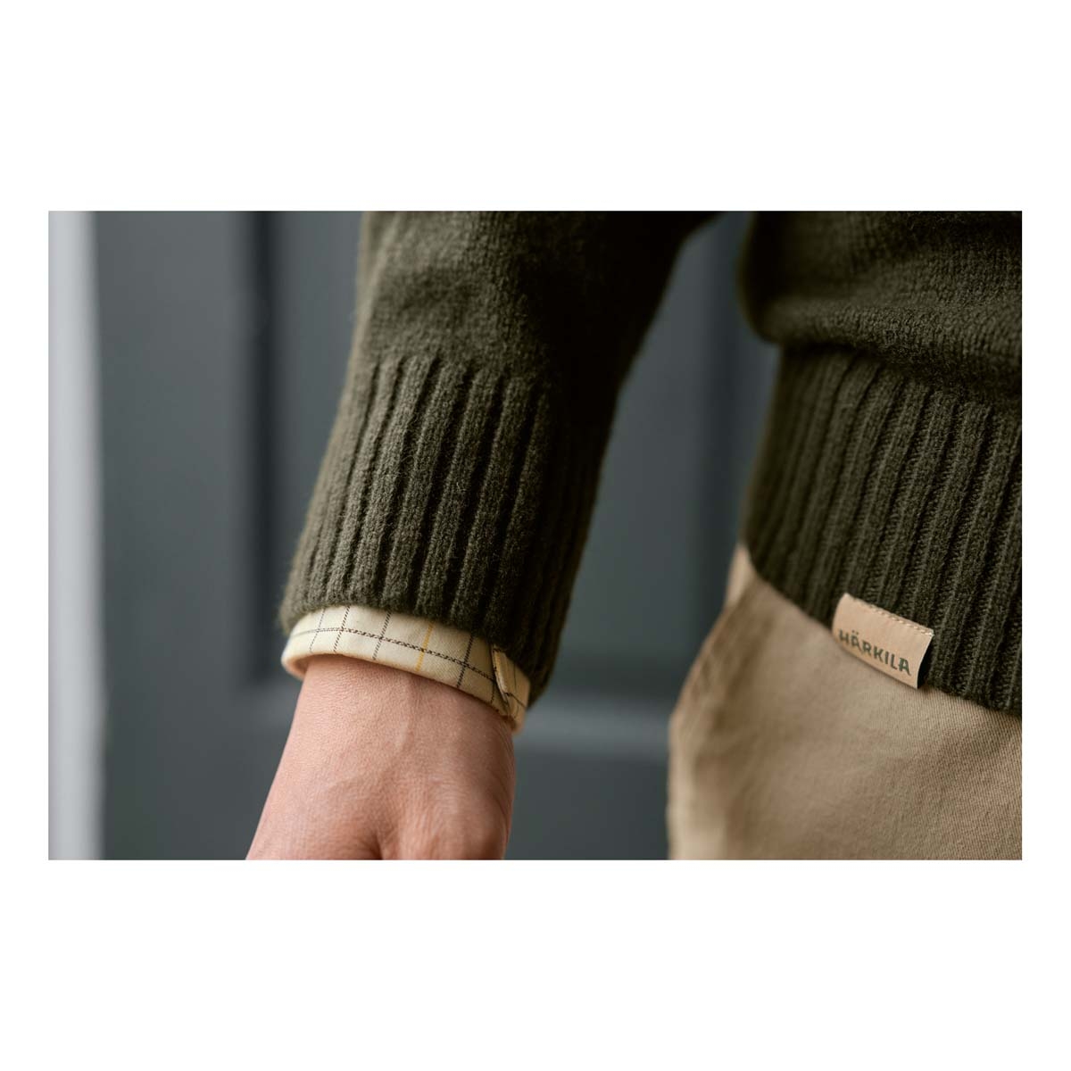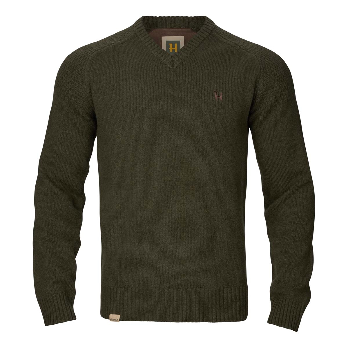 Harkila Vincent Merino V-Neck Pullover - Rosin. Our Vincent Merino V-Neck Pullover is designed for the shooter seeking both style and functionality. The pullover is made from pure, mulesing-free Merino wool with a soft feeling texture against the skin. The temperature-regulating properties of the wool ensure you stay comfortable, whether you're staying warm or cooling down. This pullover blends contemporary design with classic elegance and features a modern moss stitch on the shoulders. The versatile V-neck design allows for easy layering over a shirt and tie, perfect for formal shoot days. Thoughtful details include a classic microsuede lining inside the neck for added comfort, a discreet logo on the chest and a subtle flag label at the bottom hem. With raglan sleeves and a rib-knit finish at the cuffs and hem, the Vincent Merino V-Neck Pullover combines practicality with refined aesthetics, making it an excellent addition to the seasoned shooter's wardrobe.