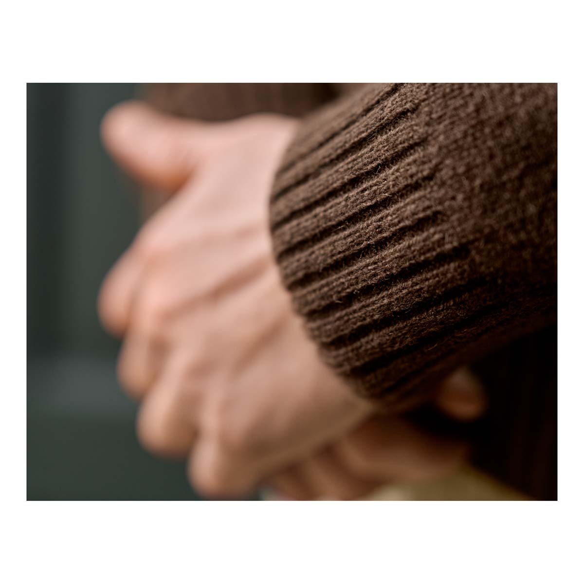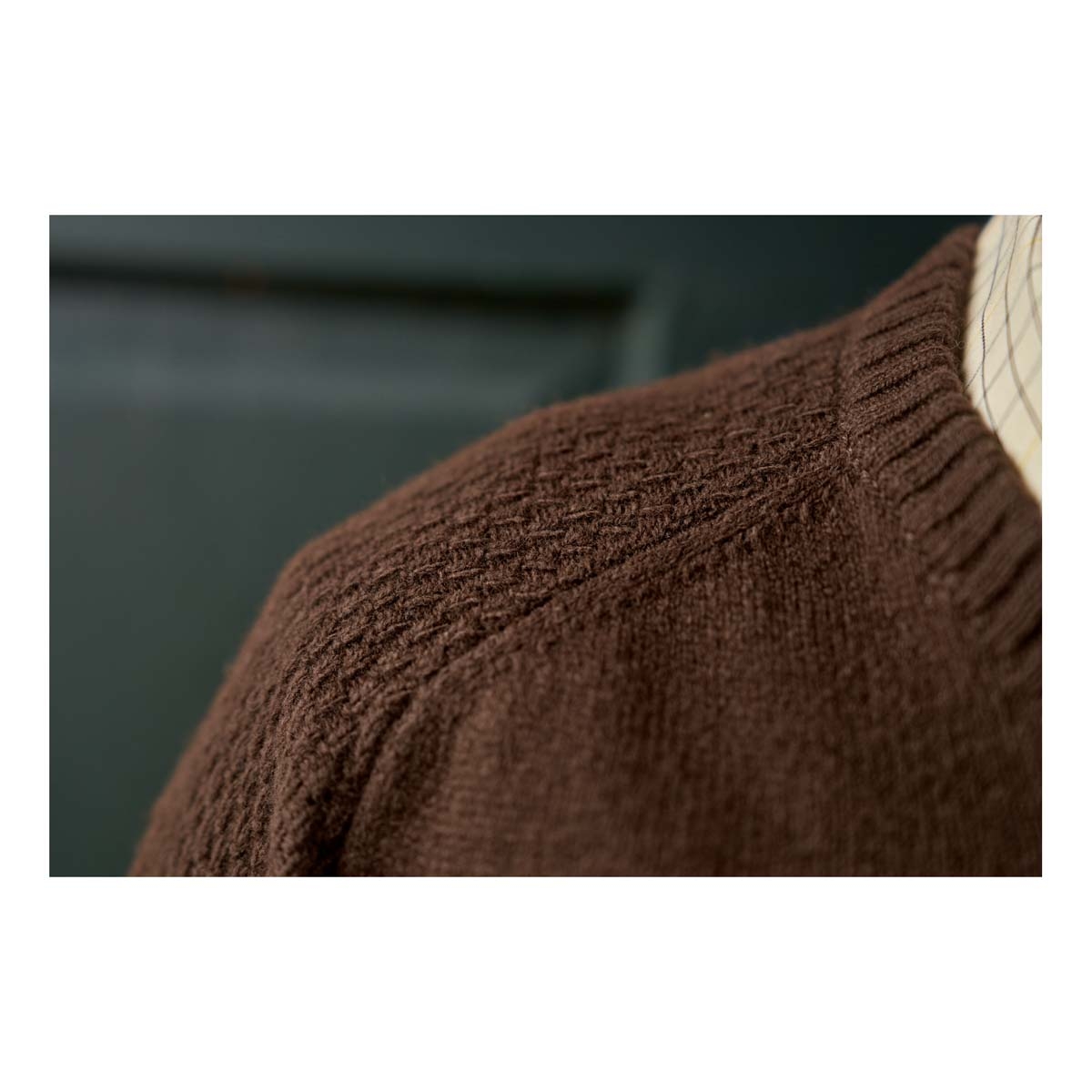 Harkila Vincent Merino V-Neck Pullover - Demitasse Brown. Our Vincent Merino V-Neck Pullover is designed for the shooter seeking both style and functionality. The pullover is made from pure, mulesing-free Merino wool with a soft feeling texture against the skin. The temperature-regulating properties of the wool ensure you stay comfortable, whether you're staying warm or cooling down. This pullover blends contemporary design with classic elegance and features a modern moss stitch on the shoulders. The versatile V-neck design allows for easy layering over a shirt and tie, perfect for formal shoot days. Thoughtful details include a classic microsuede lining inside the neck for added comfort, a discreet logo on the chest and a subtle flag label at the bottom hem. With raglan sleeves and a rib-knit finish at the cuffs and hem, the Vincent Merino V-Neck Pullover combines practicality with refined aesthetics, making it an excellent addition to the seasoned shooter's wardrobe.