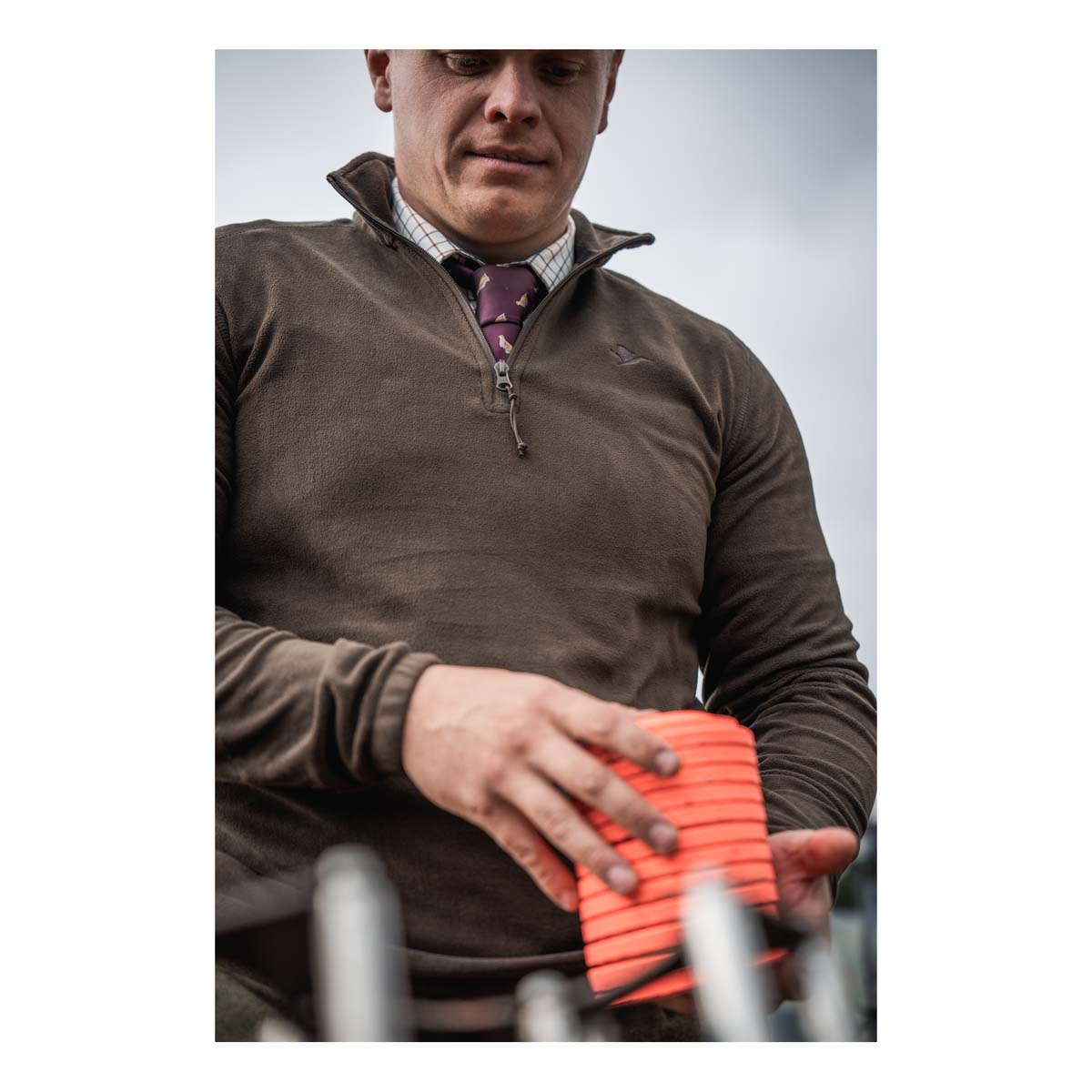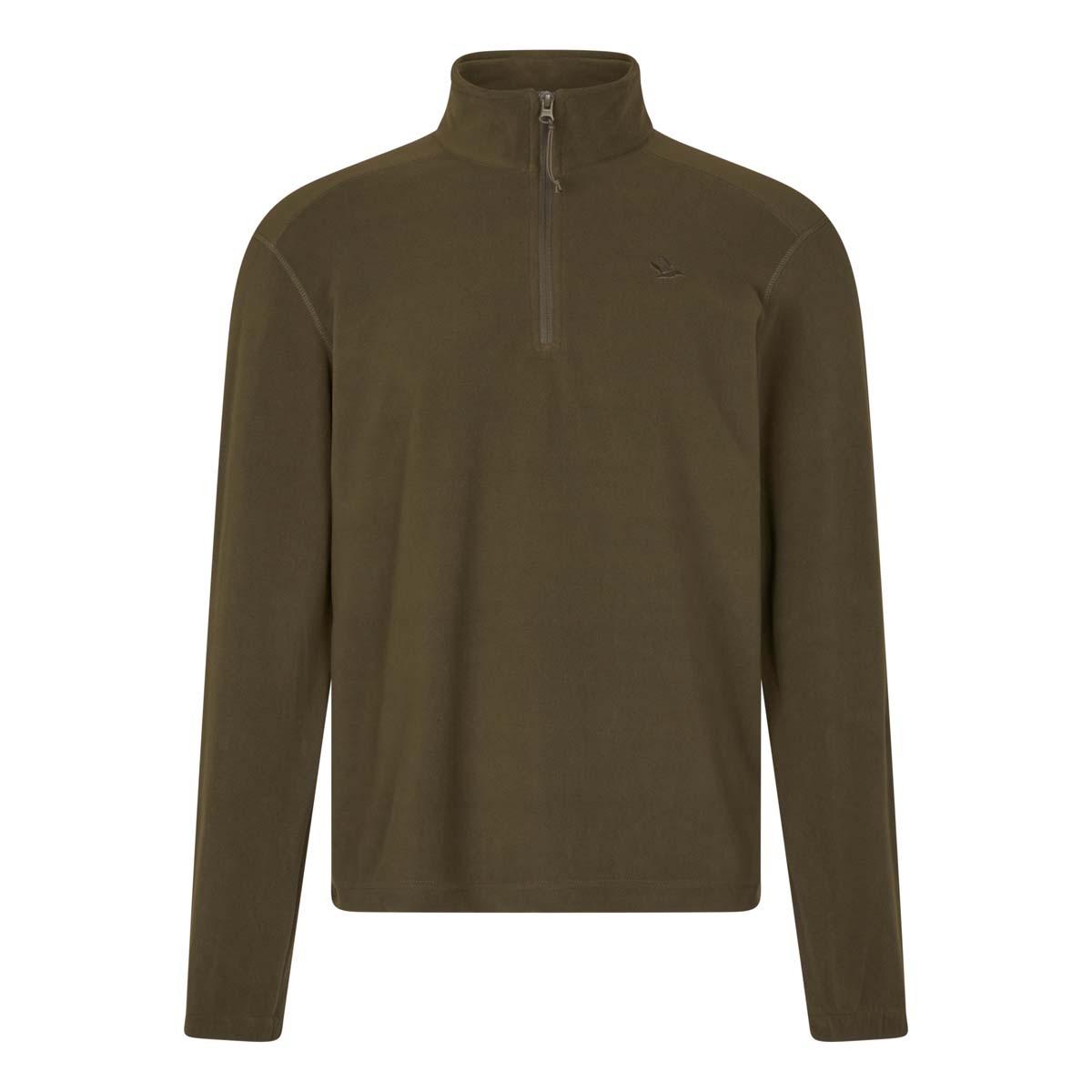Seeland Benjamin Half Zip - Pine Green. The Benjamin Half Zip Fleece is the newest addition to our popular Benjamin program, designed for hunters seeking lightweight warmth and versatility. This mid-layer is made from soft 160 g polyester fleece. It provides excellent insulation while remaining stretchable and quick-drying. It’s ideal for layering in various hunting conditions and offers both comfort and functionality. The clean design mirrors the aesthetics of the Benjamin and Dew collections, featuring a small woodcock embroidery on the chest and neckline for a subtle touch of style. Whether worn on its own or on top of a shooting shirt, the Benjamin Half Zip Fleece is a solid choice for your shoots.