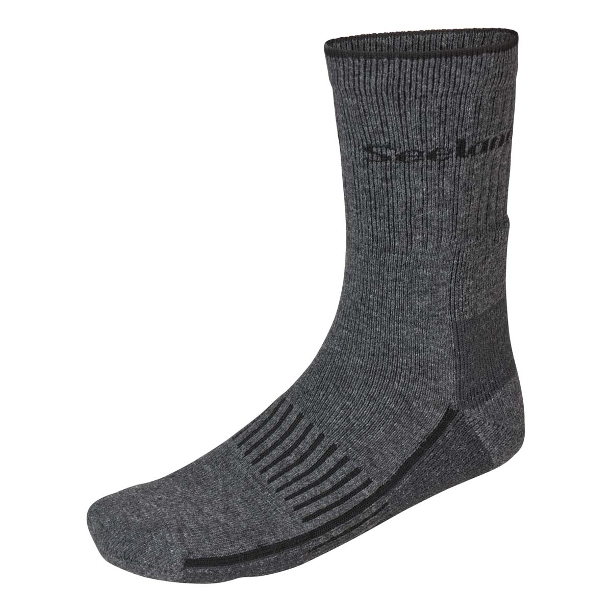 Seeland Field Heavy Merino Socks - Grey Melange/Black. Heavy Field Merino Socks are crafted with 60% Merino wool for natural temperature regulation and moisture control, keeping your feet dry and comfortable during long hunts. Reinforced at the heel and toe for durability, these socks also feature a cushioned footbed and a supportive compression band around the arch, providing a snug, secure fit. Heavy Field Merino Socks are designed for warmth and all-day comfort – the perfect companions for any hunt.