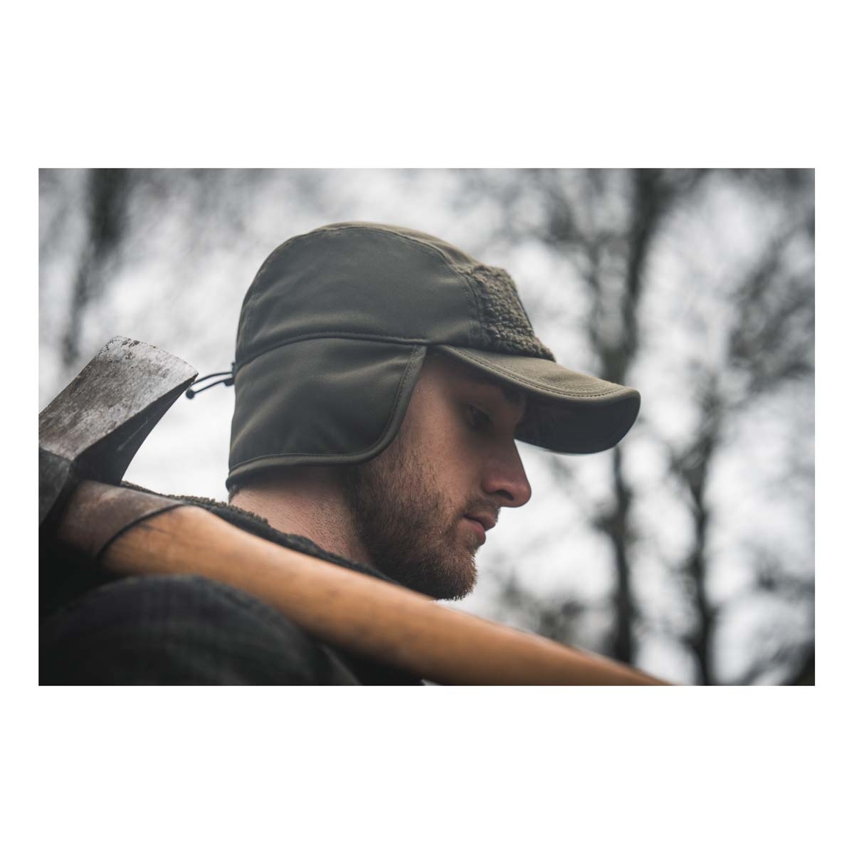 Seeland Teddy Fold Down Cap - Pine Green. The Teddy Fold-Down Cap is designed to keep you warm and comfortable on the hunt. It features a combination of insulating materials and warm teddy fleece, offering reliable protection for the head. As temperatures drop, the fold-down function shields your ears and neck for added warmth. Adjustable with an elastic cord, it ensures a secure fit, while the soft brushed comfort lining enhances overall coziness. The Teddy Fold-Down Cap will keep you comfortable and protected throughout your cold weather hunt.