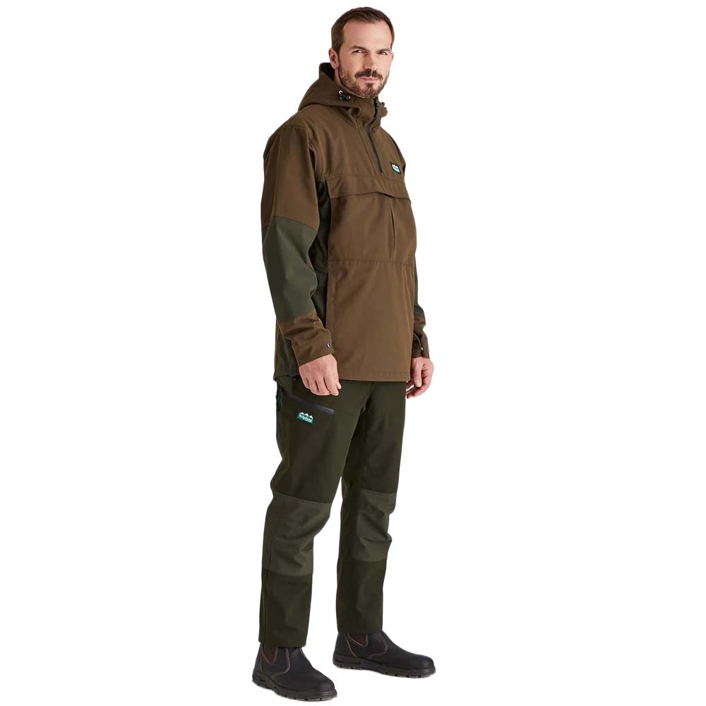 Ridgeline Cambrian Smock - Bark/Deep Forest. Designed for hardworking country professionals, our Cambrian Smock is a tough waterproof overhead offering superb comfort and freedom of movement. The outer fabric is a rugged blend of Nylon and elastane to offer high levels of both abrasion and tear resistance in combination with a touch of stretch.
