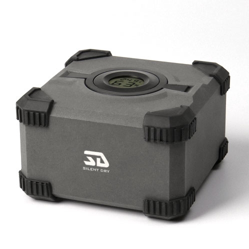 Silent Dry Hypercube Dehumidifier - Medium. Protect your valuable items—firearms, tactical gear, airsoft kit, or any enclosed space—from moisture damage with the HYPERCUBE. Designed to work in gun safes or storage volumes of 150–600 L, this high-performance dehumidifier offers long-lasting, reliable protection, keeping rust and mould at bay. Built with heat-resistant corner guards and a built-in hygrometer for easy humidity monitoring, it marries function with durability.