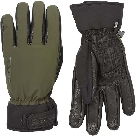 Sealskinz Witton WP Extreme Cold Weather Gloves - Olive. A heavy-duty, waterproof glove with Aquasealz™ technology. PrimaLoft® Gold insulation tackles the coldest temperatures. A supple goatskin leather palm incorporates a textured grip formation for added utility.