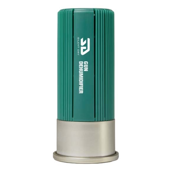 Silent Dry Shotgun Jr. Dehumidifier Stone - Green. Keep your firearms, optics, and valuable gear safe from moisture damage with the SHOTGUN Jr. Dehumidifier. Shaped like a jumbo shotgun shell, this compact yet powerful dehumidifier is designed for rifle cases, small gun safes, and enclosures up to 260 L. Its innovative nano-porous silicon core absorbs excess humidity, protecting your equipment from rust, mold, mildew, and corrosion.