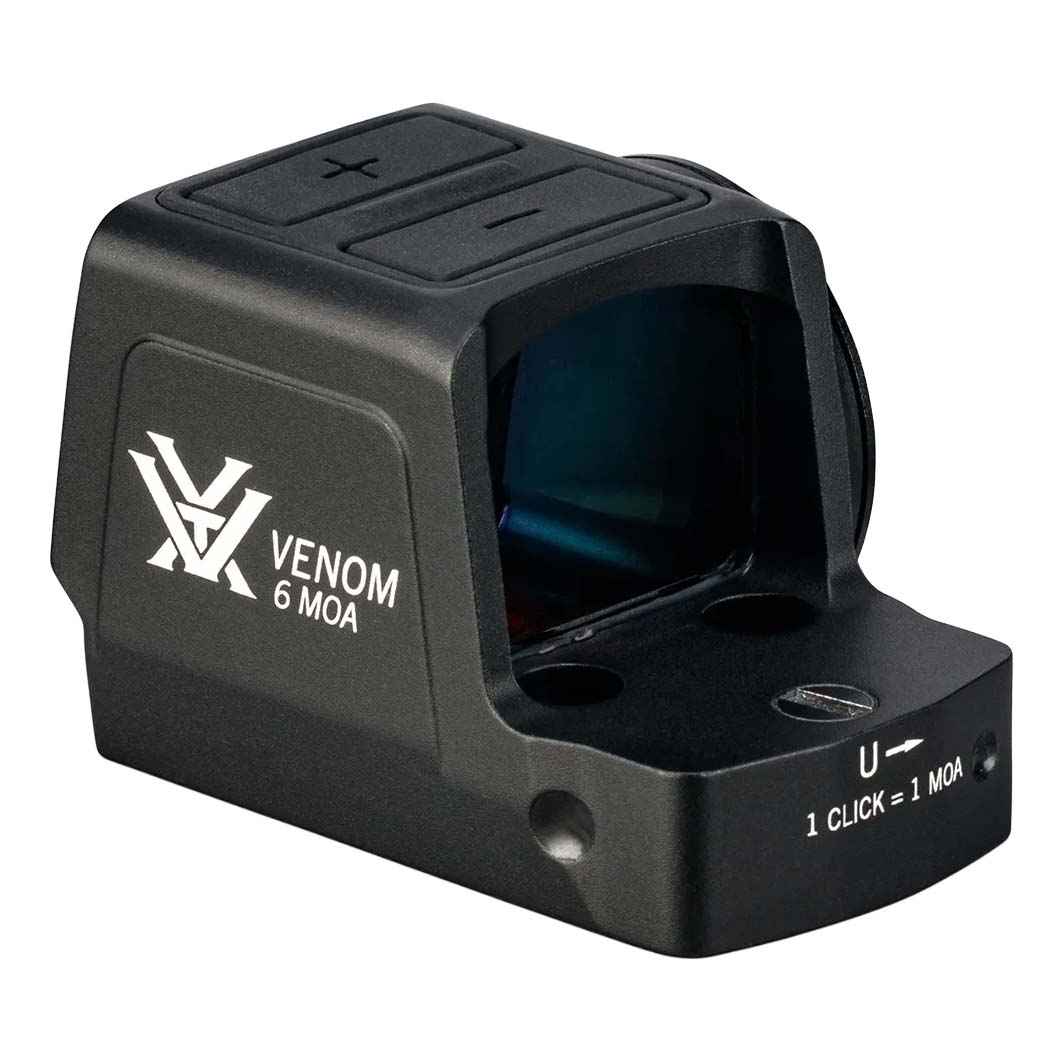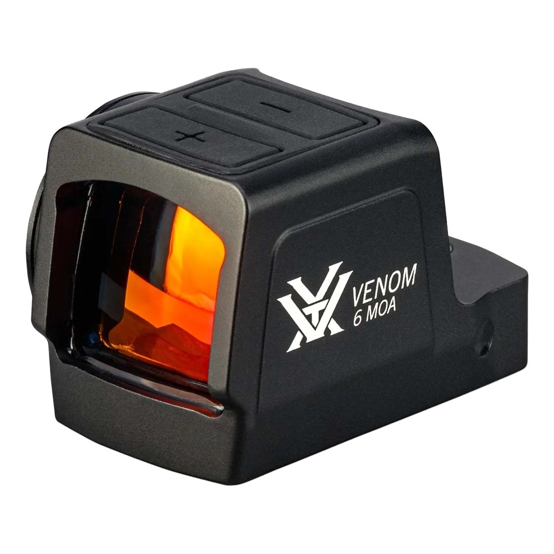 Vortex Venom Enclosed Micro Red Dot. For those seeking reliable performance and functionality no matter how tough the conditions, the Venom® Enclosed Micro Red Dot features an easy-to-mount, closed design that shields against disruptions from rain, dust, or snow. With a large sight window, motion activation, and adjustable brightness, it delivers function, handling, speed, and accuracy in any shooting situation.