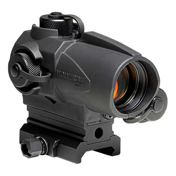 Sightmark Wolverine CSR Red Dot Sight. Designed for quick-target acquisition on shotguns and short-barreled rifles, the Wolverine CSR red dot sight delivers unlimited eye relief and first-class battery life using a single AA battery. Its variable brightness and night vision modes enable the ability to co-witness with a night vision sight.