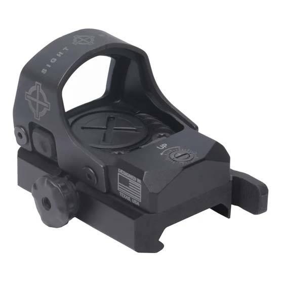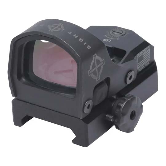 Sightmark Mini Shot Reflex Sight - 3 MOA - LQD Weaver/Picatinny - Black.. Inspired by law enforcement, the Sightmark Mini M-Spec LQD DE (SM26043-LQD) is an ideal optic for hunting, competition shooting and home defense. The Mini M-Spec is built from aluminum alloy with a steel protective shield making it one of the toughest compact optics out there. With 10 brightness settings, the Mini M-Spec reticle is visible in virtually any environment, from day time to extreme low light conditions. Mini M-Spec users benefit from the addition of ambidextrous switch controls to fit the needs of both left- and right-handed users. Mini M-Specs boast a coated and scratch resistant lens, 12hour auto shut-off and is IP67 rated waterproof, dustproof and shockproof. The optic comes complete with a locking quick-detach mount and AR riser mount perfect for ARs, AKs, shotguns and pistols.