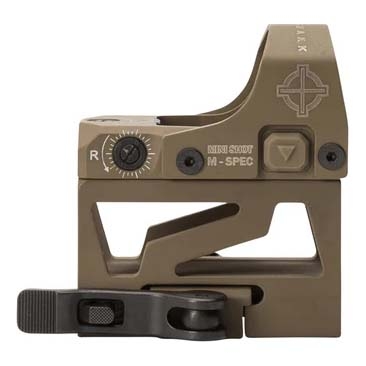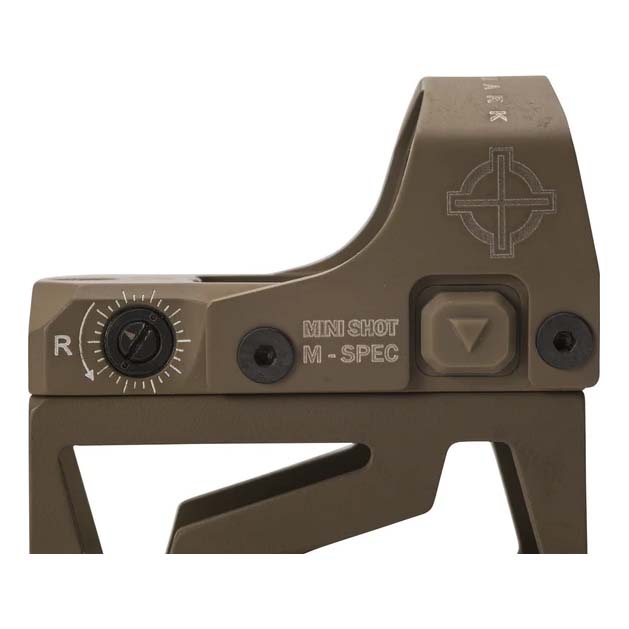 Sightmark Mini Shot Reflex Sight - 3 MOA - LQD Weaver/Picatinny - Dark Earth. Inspired by law enforcement, the Sightmark Mini M-Spec LQD DE (SM26043-LQD) is an ideal optic for hunting, competition shooting and home defense. The Mini M-Spec is built from aluminum alloy with a steel protective shield making it one of the toughest compact optics out there. With 10 brightness settings, the Mini M-Spec reticle is visible in virtually any environment, from day time to extreme low light conditions. Mini M-Spec users benefit from the addition of ambidextrous switch controls to fit the needs of both left- and right-handed users. Mini M-Specs boast a coated and scratch resistant lens, 12hour auto shut-off and is IP67 rated waterproof, dustproof and shockproof. The optic comes complete with a locking quick-detach mount and AR riser mount perfect for ARs, AKs, shotguns and pistols.