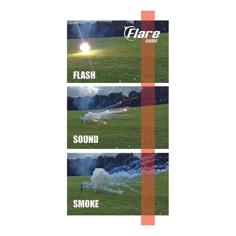 - When hit, will ignite producing a flash and consistent smoke