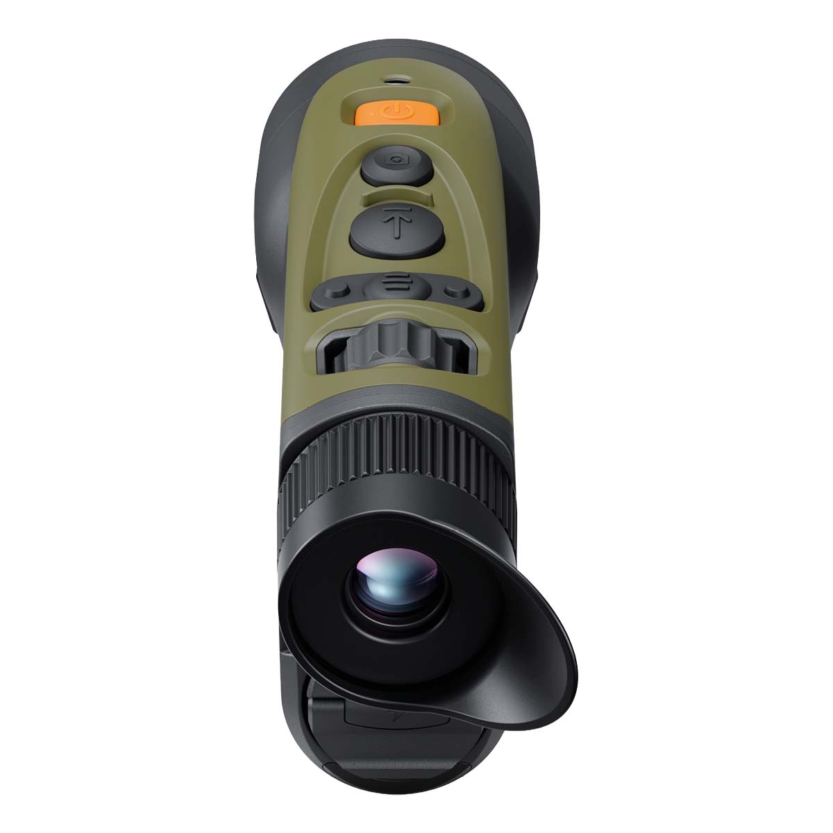 The magnesium alloy body gives a premium feel and robust durability without excessive weight — at just 500 g this is unusually light for its class. The IP67 rating ensures it can take on damp, dusty or cold conditions with ease. The ergonomic layout—a focus wheel at the eyepiece, wrist strap and button placement—makes one-hand operation intuitive and efficient.