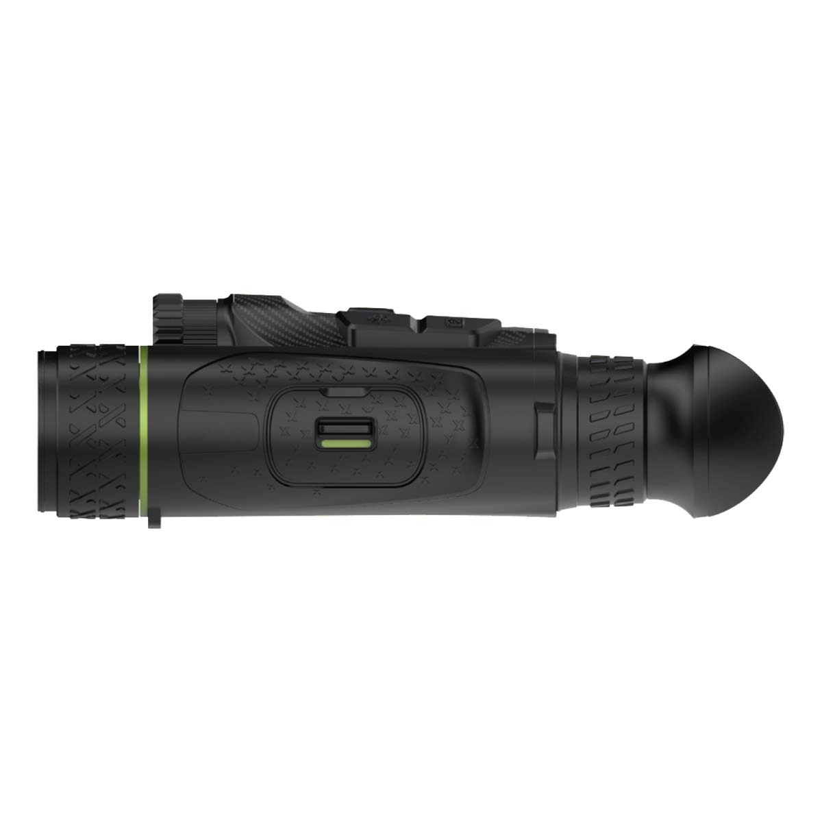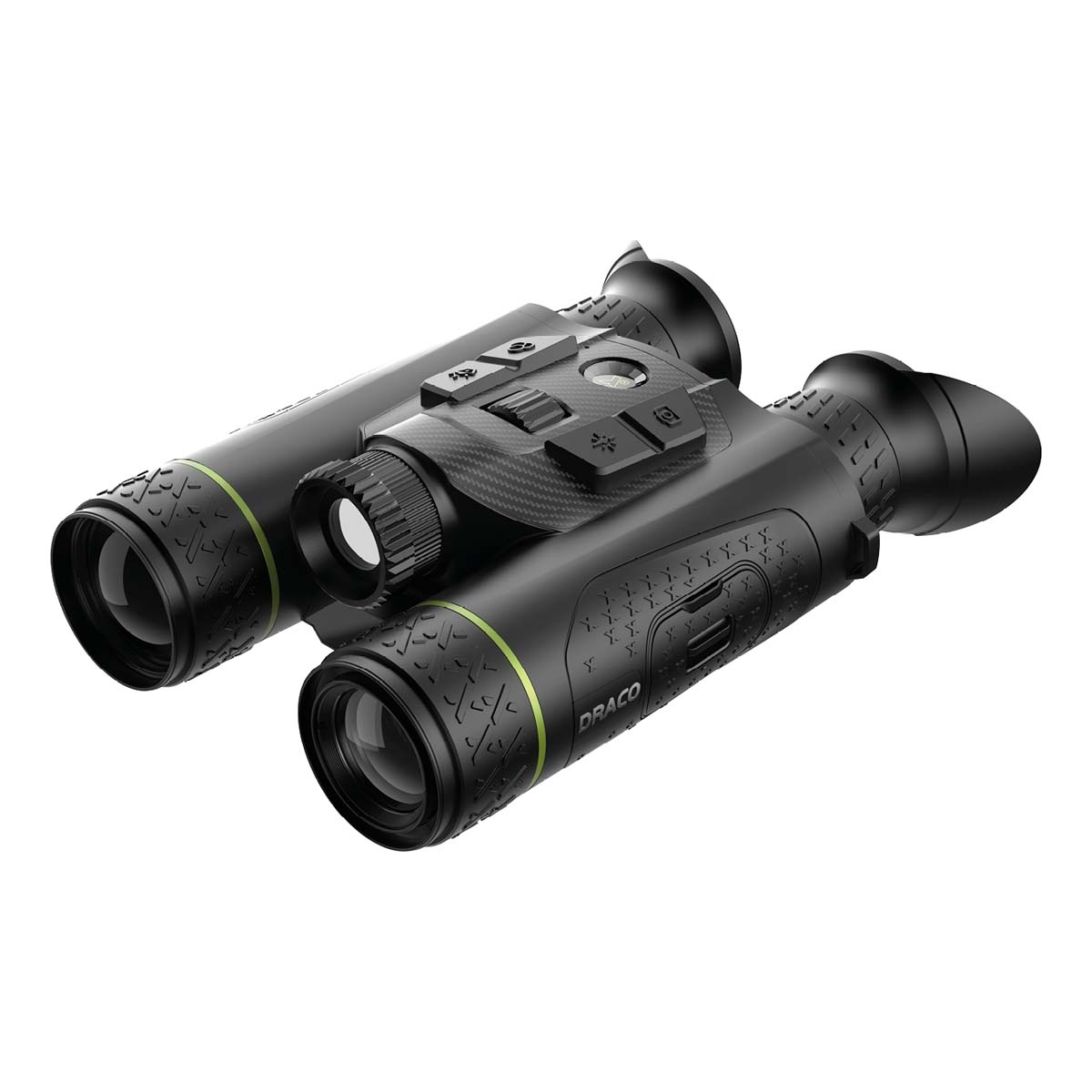 The magnesium-alloy housing gives the Draco D635-4K a rugged, field-ready build, yet it remains light enough — and ergonomically shaped — for sustained handheld use. The familiar binocular-style wheel and button layout make operation intuitive, even during gloved or nighttime use. Foldable eyecups and adjustable interpupillary settings further enhance comfort during extended observation sessions.