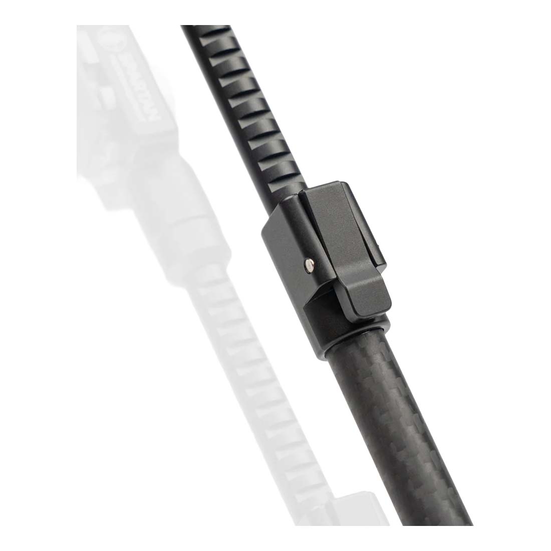 Main materials include hard-anodized 7075-T7351 aluminium and multi-layered carbon fibre, selected for a durable, lightweight assembly that withstands rigours of tactical and hunting applications. The steel tips with tethered synthetic boots offer traction on multiple surfaces, enhancing steadiness in diverse environments.