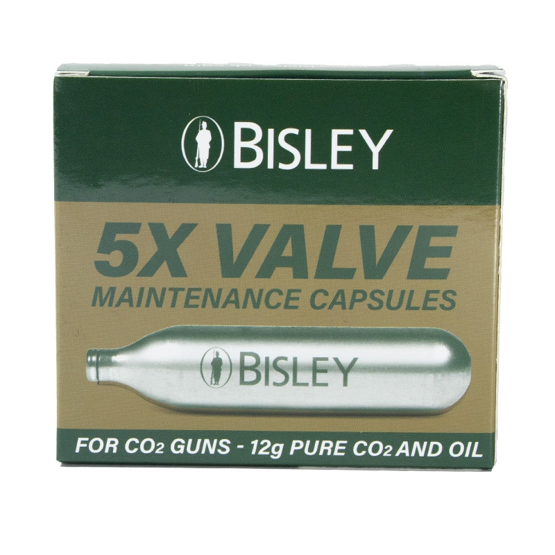 Bisley Valve Maintenance Capsules - 12g - 5pk. Valve maintenance capsules contain not only CO2 gas but also 0.5 g of a special oil. This oil cleans and oils the valve while it shoots and provides all sliding parts of the mechanism with a layer of oil. Using these capsules regularly ensures reliable operation and consistent precision.