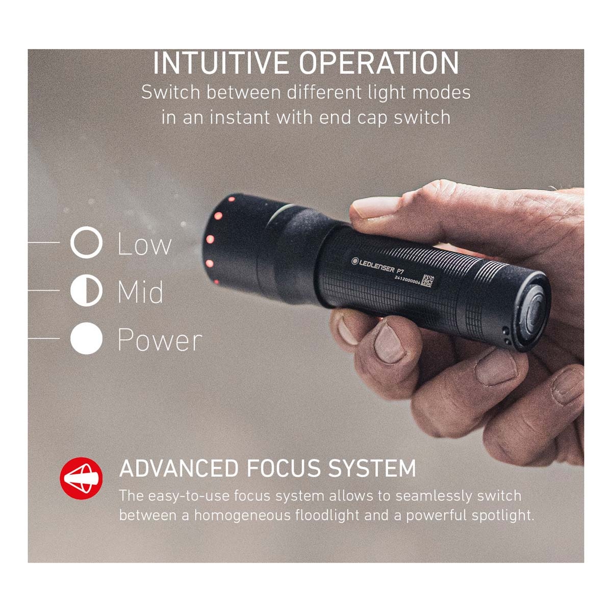 The P7 is designed with simplicity in mind, making it easy to operate straight out of the box. The rear switch allows intuitive cycling through light modes, while the smooth focus mechanism enables quick beam adjustments to suit changing tasks.