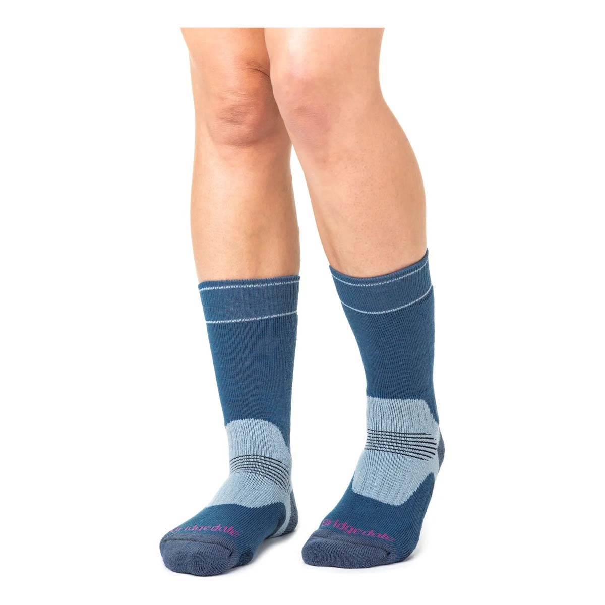 The Bridgedale Women’s Hike Midweight Merino Performance Boot sock in Blue/Sky is engineered for outdoor enthusiasts who demand all-day comfort on walks, hikes and multi-day expeditions. Designed to keep feet dry, warm and supported in a variety of terrains and conditions, this midweight boot sock blends technical performance with a women’s specific fit.