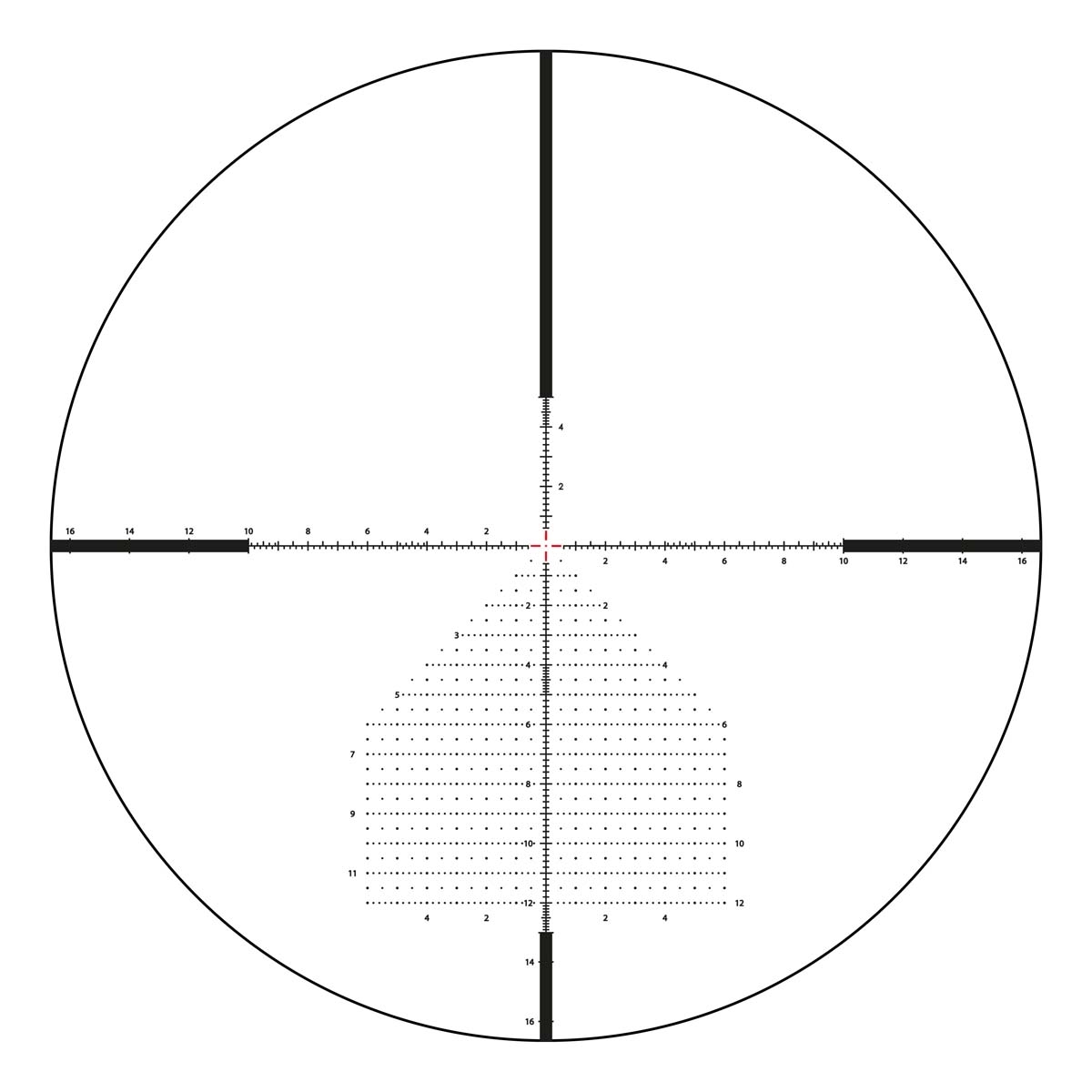 - First focal plane MP2 Fine MRAD reticle with detailed holdover grid