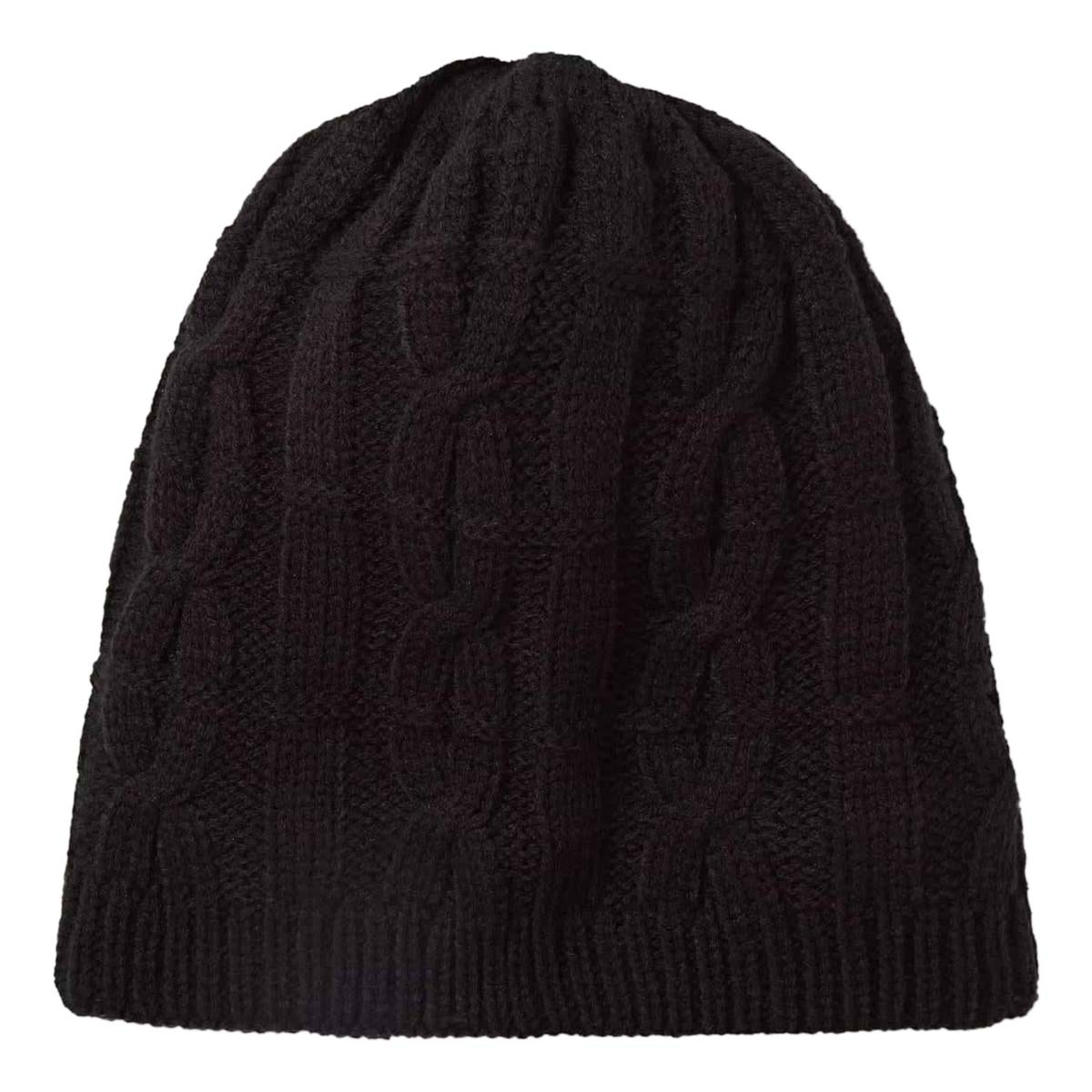 The combination of cable knit acrylic and a soft internal lining provides insulation that is suitable for cold winter conditions.