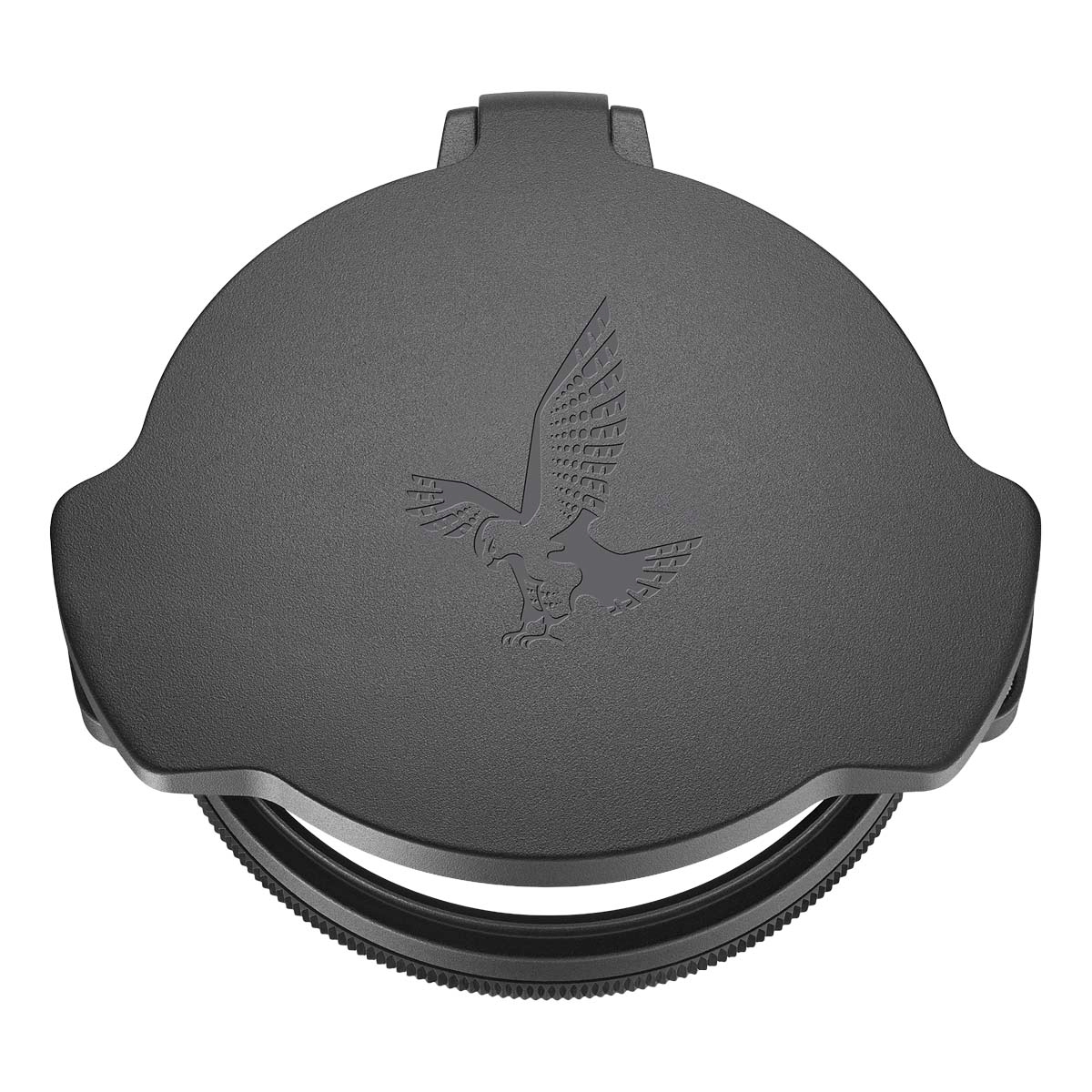 Swarovski Scope Objective Lens Protector. Perfect protection for objective lenses on rifle scopes. The scope lens protector excellently guards objective lenses against all weather conditions. The aluminum protector can be rotated through 360° and opened in any direction, making it ideal for both right-handed and left-handed shooting. Features a laser-etched Swarovski logo.