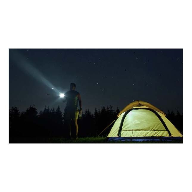 The torch features stepless focus adjustment. This allows the beam to transition smoothly between wide-area flood lighting and a more concentrated spot beam.