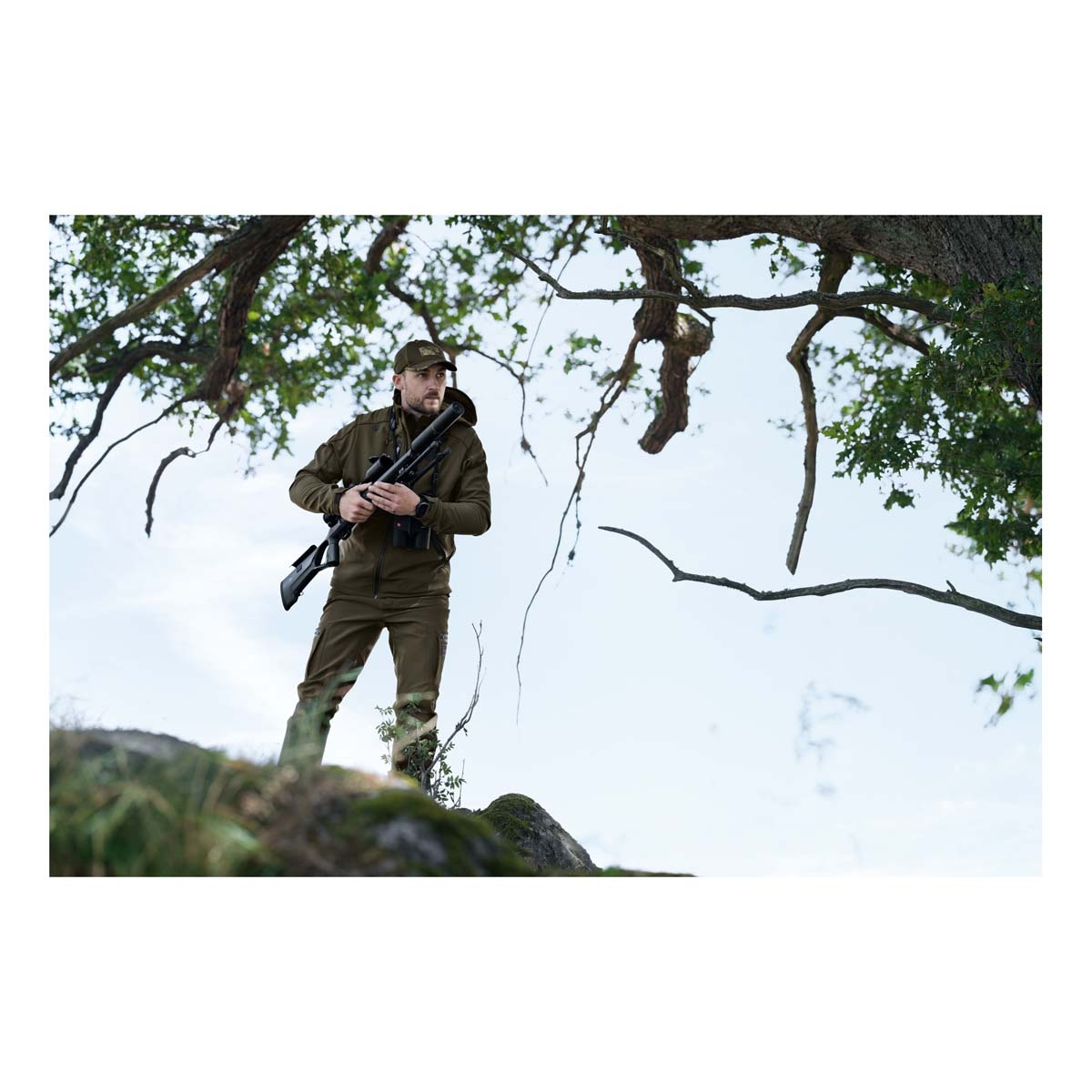 - Silent ripstop softshell construction supports stealth during stalking