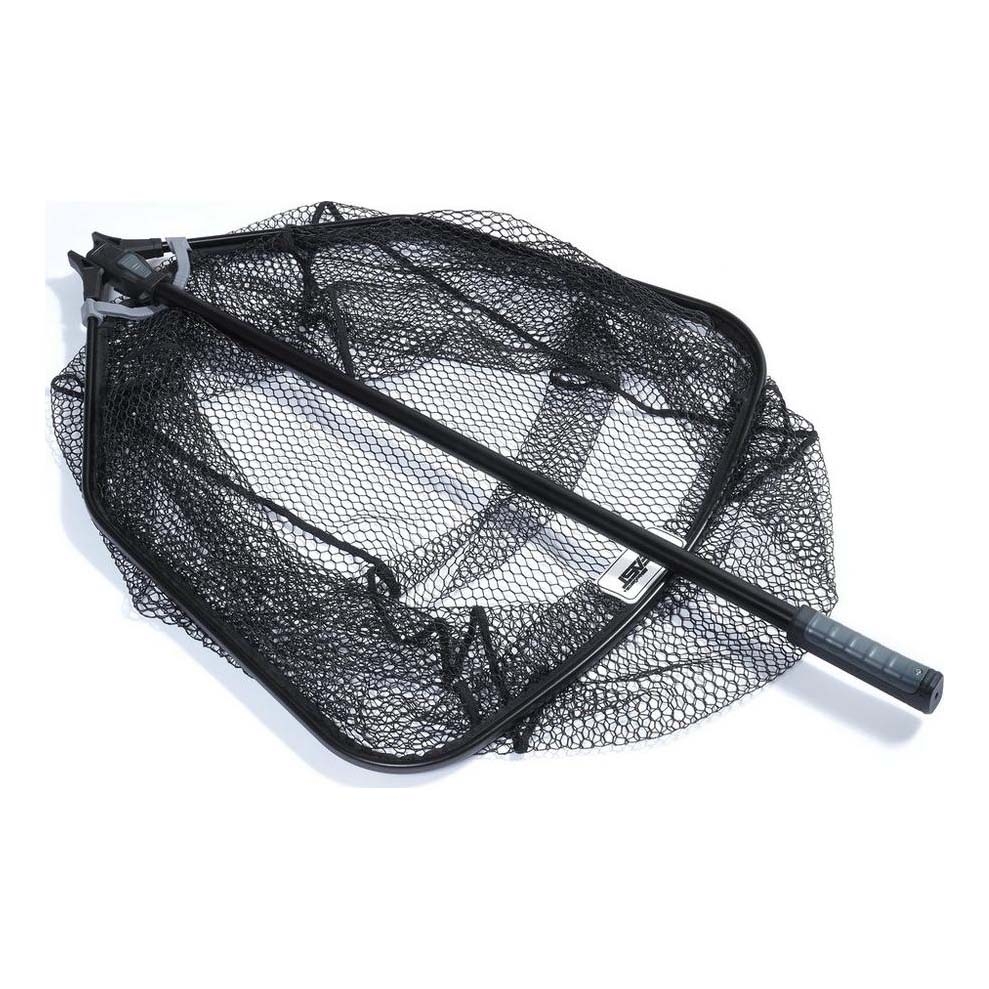 With its rubber-coated mesh and special lifting grip, it offers both fish-friendly handling and the leverage required when landing heavy fish. The foldable frame and slide-in handle design also make it a practical tool for anglers fishing from boats or banks where space and portability matter.
