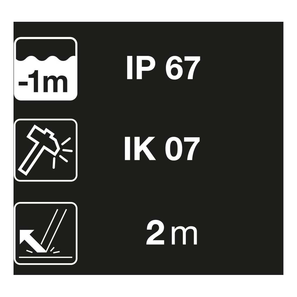- Impact resistance: IK07
