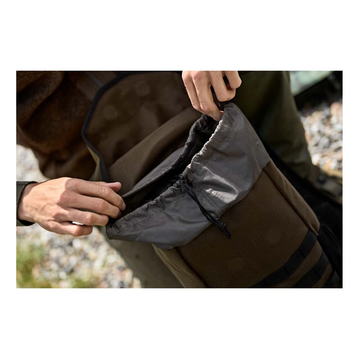 The top features a strong magnetic closure that provides quick, quiet access to the main compartment while eliminating the noise typically associated with zips or Velcro. A MOLLE system is integrated into the exterior, enabling customisation through the attachment of additional pouches or accessories.