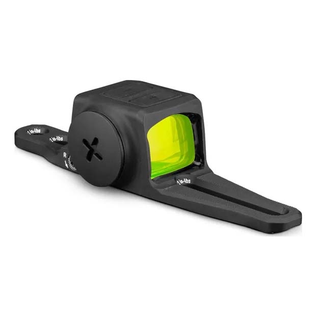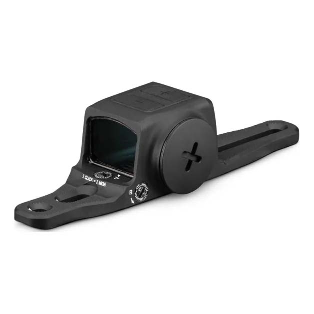 - Side-load CR2032 battery compartment for battery changes without removing the optic