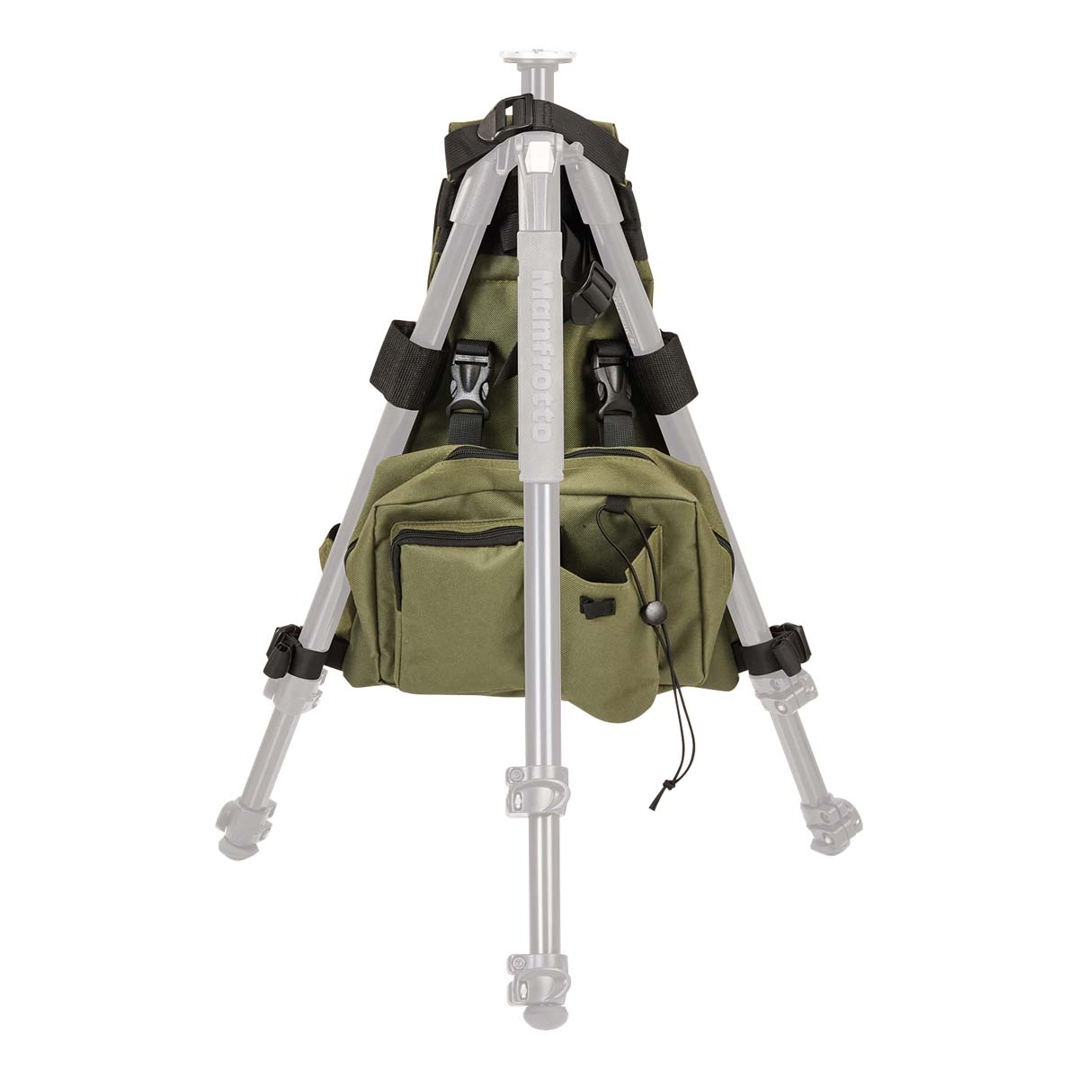 The Opticron Tripac Tripod Harness & Accessory Pack is a practical field solution for transporting tripods alongside essential optical or photographic equipment. Designed with mobility in mind, it allows users to carry their setup hands-free while maintaining quick access to accessories.