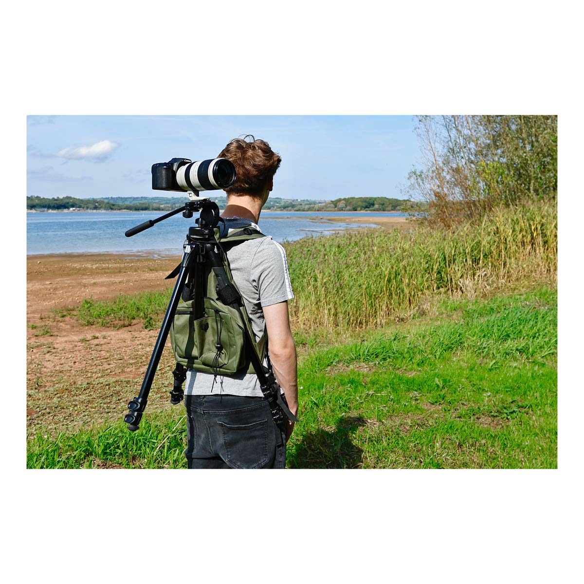 The system excels in delivering stable, hands-free transport while keeping equipment organised and within reach. Its multi-point attachment system ensures the tripod remains secure during movement.