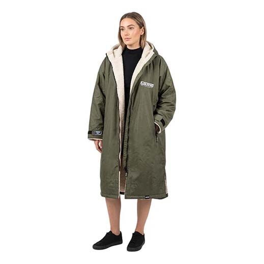 The robe is designed for straightforward, hassle-free use, with a simple throw-on design that works well in changing outdoor conditions. The two-way zip allows for quick adjustments and ventilation when needed.