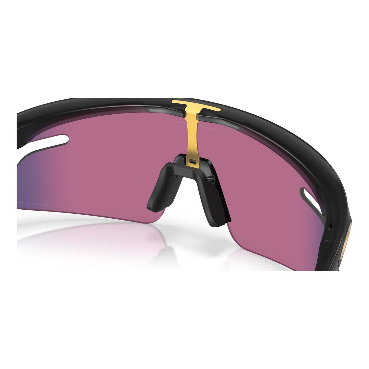 The sunglasses use Unobtainium earsocks and a Unobtainium nosepad to help improve grip with perspiration. Oakley states this helps keep the frame in place without slipping, which is especially useful during harder efforts.