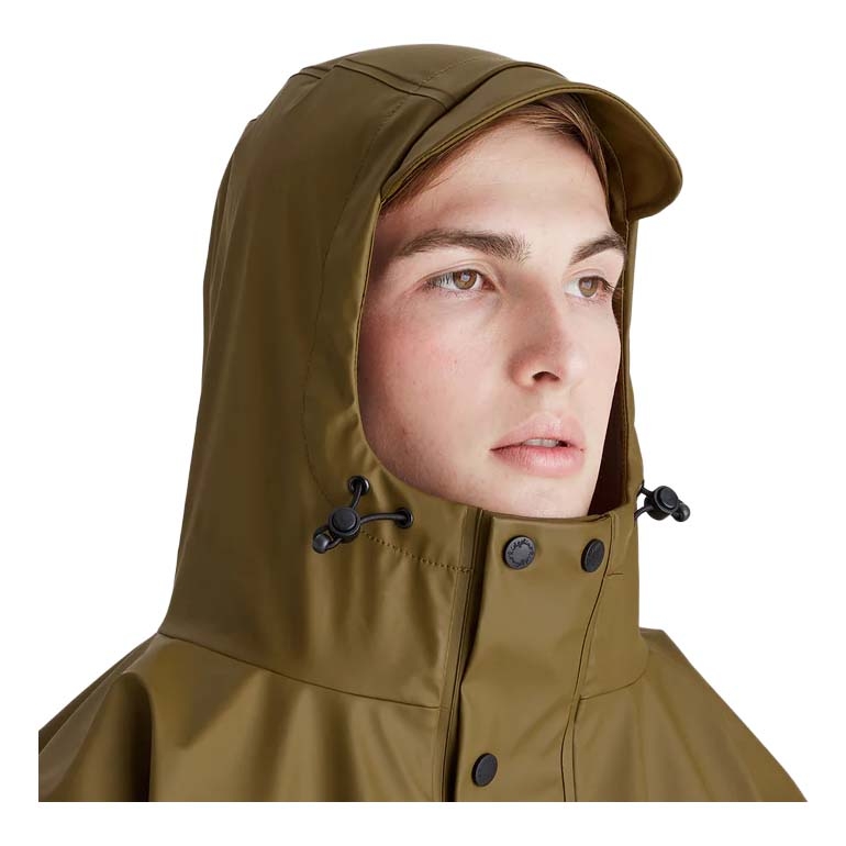 The design is straightforward and user-friendly, allowing for quick deployment when rain begins. The popper-fastened front enables fast closure, while the adjustable hood ensures a secure fit with minimal adjustment.