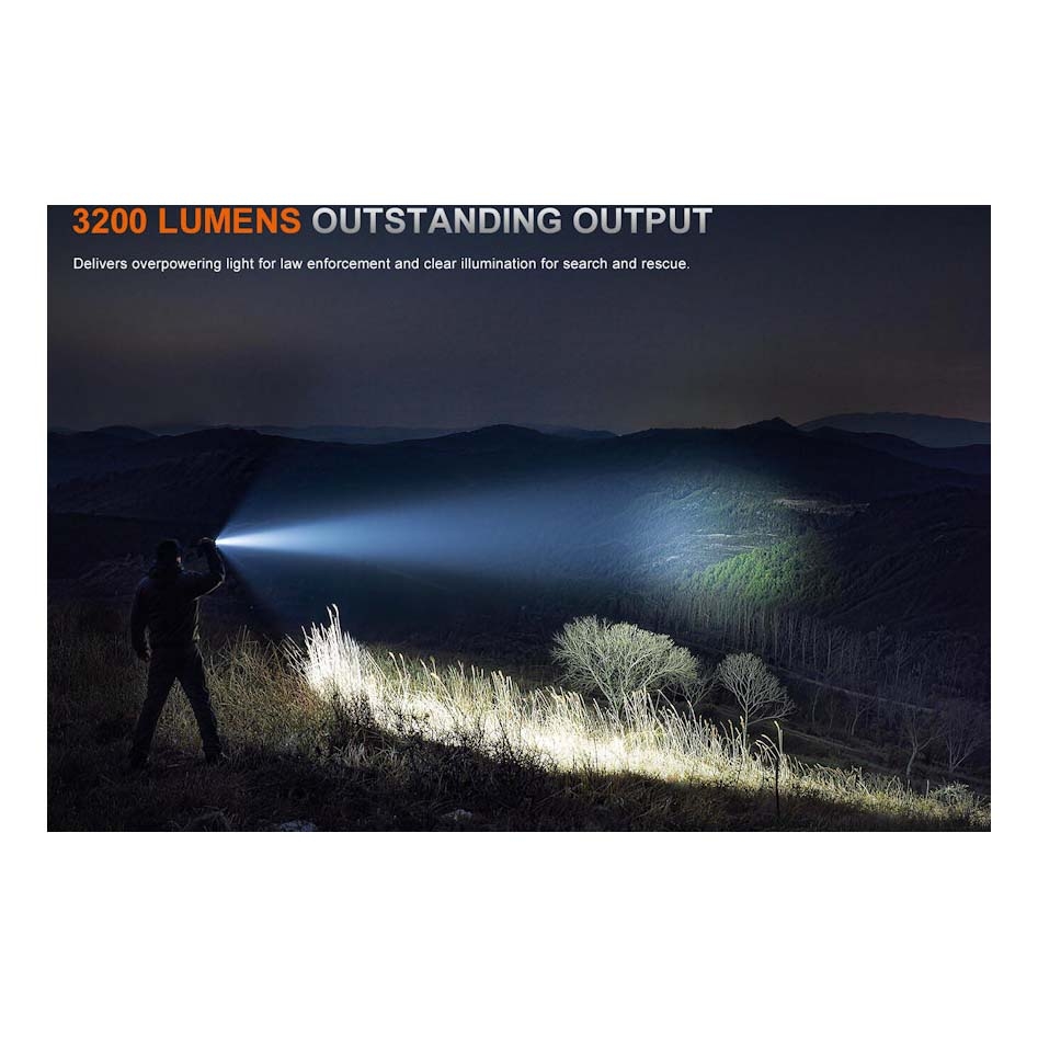 The torch delivers a maximum output of 3200 lumens, providing strong illumination suitable for long-range visibility and demanding operational environments. It also offers multiple brightness levels to suit different tasks.