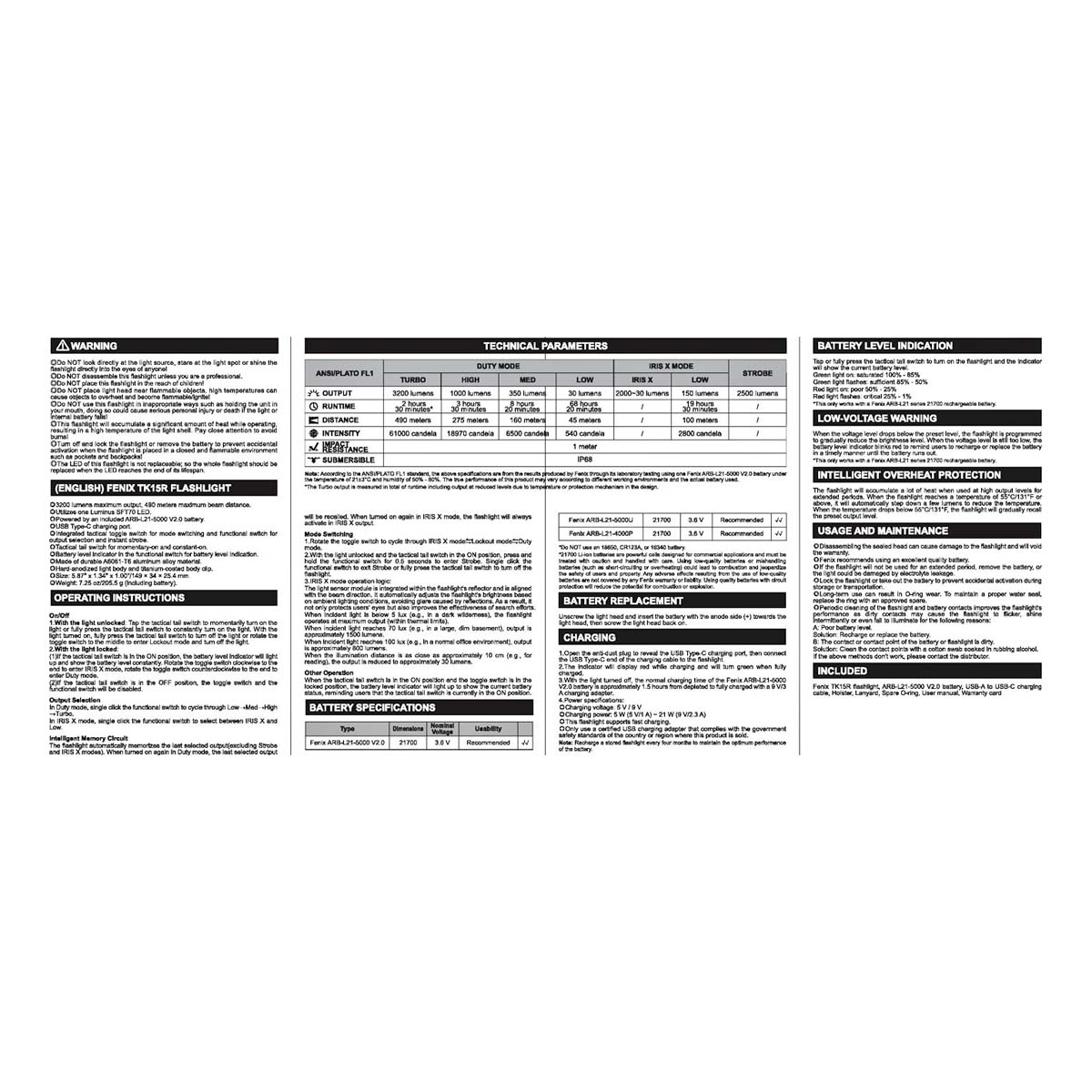 The TK15R delivers impressive performance through a combination of high lumen output and adaptive lighting control. It is designed to handle both long-range illumination and close-range tasks without user intervention.