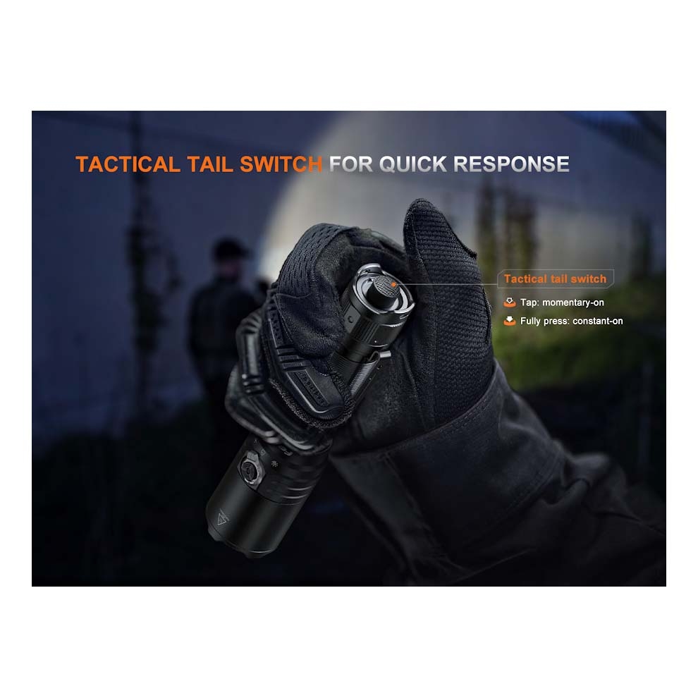 The TK15R is designed for intuitive handling, featuring a dual-switch system that supports rapid, one-handed operation. A forward clicky tail switch enables momentary or constant activation, while the head-mounted toggle switch allows quick mode selection.