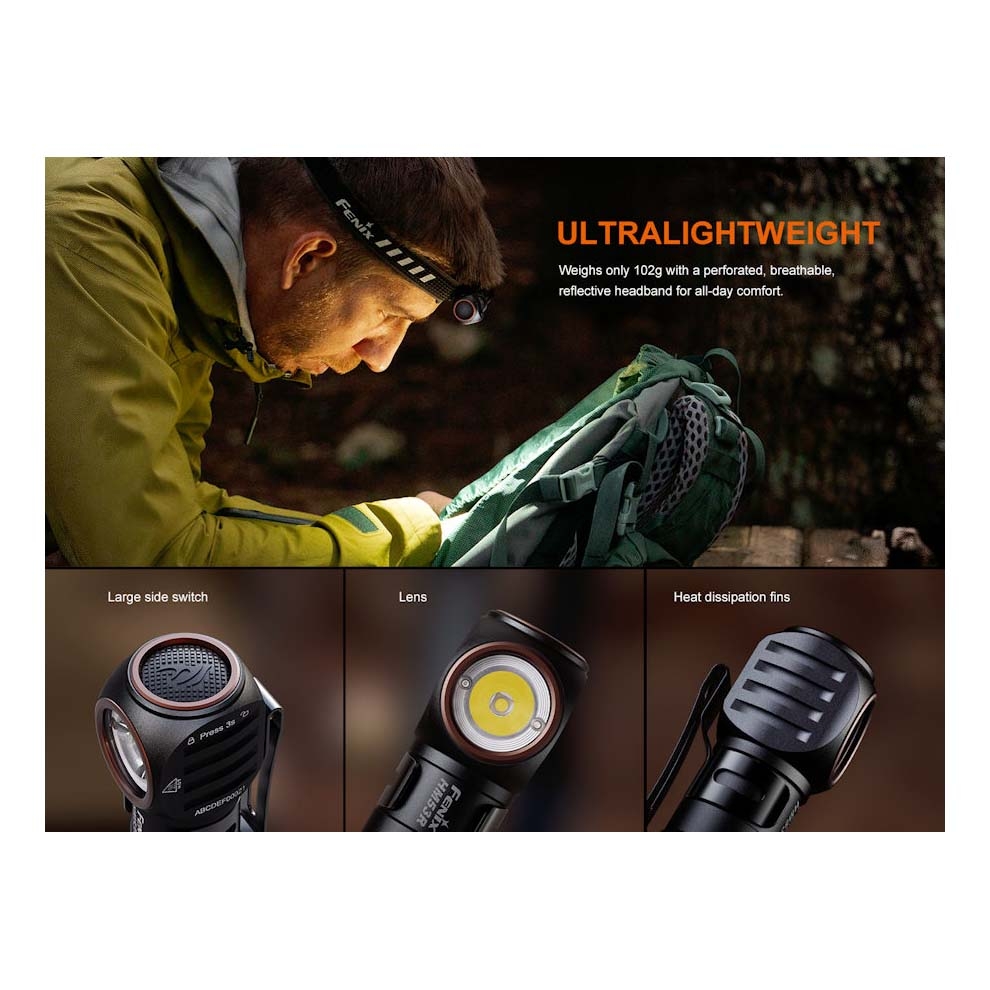 The Fenix HM53R is a compact, high-output rechargeable headlamp designed for outdoor enthusiasts and professionals who need reliable, hands-free lighting. Ideal for camping, hiking, running, fishing, or workplace use, it combines powerful illumination with a lightweight, versatile design.