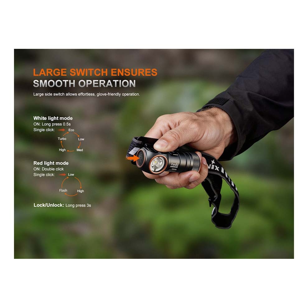 The HM53R is designed with simplicity in mind, featuring a large side switch that is easy to operate even when wearing gloves. Its intuitive interface allows users to quickly cycle through brightness levels and lighting modes.