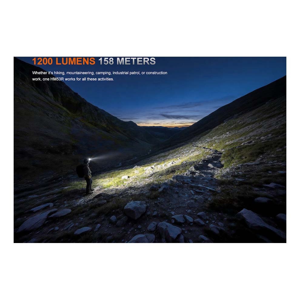 The HM53R produces up to 1200 lumens, providing strong illumination suitable for a wide range of outdoor and work tasks.