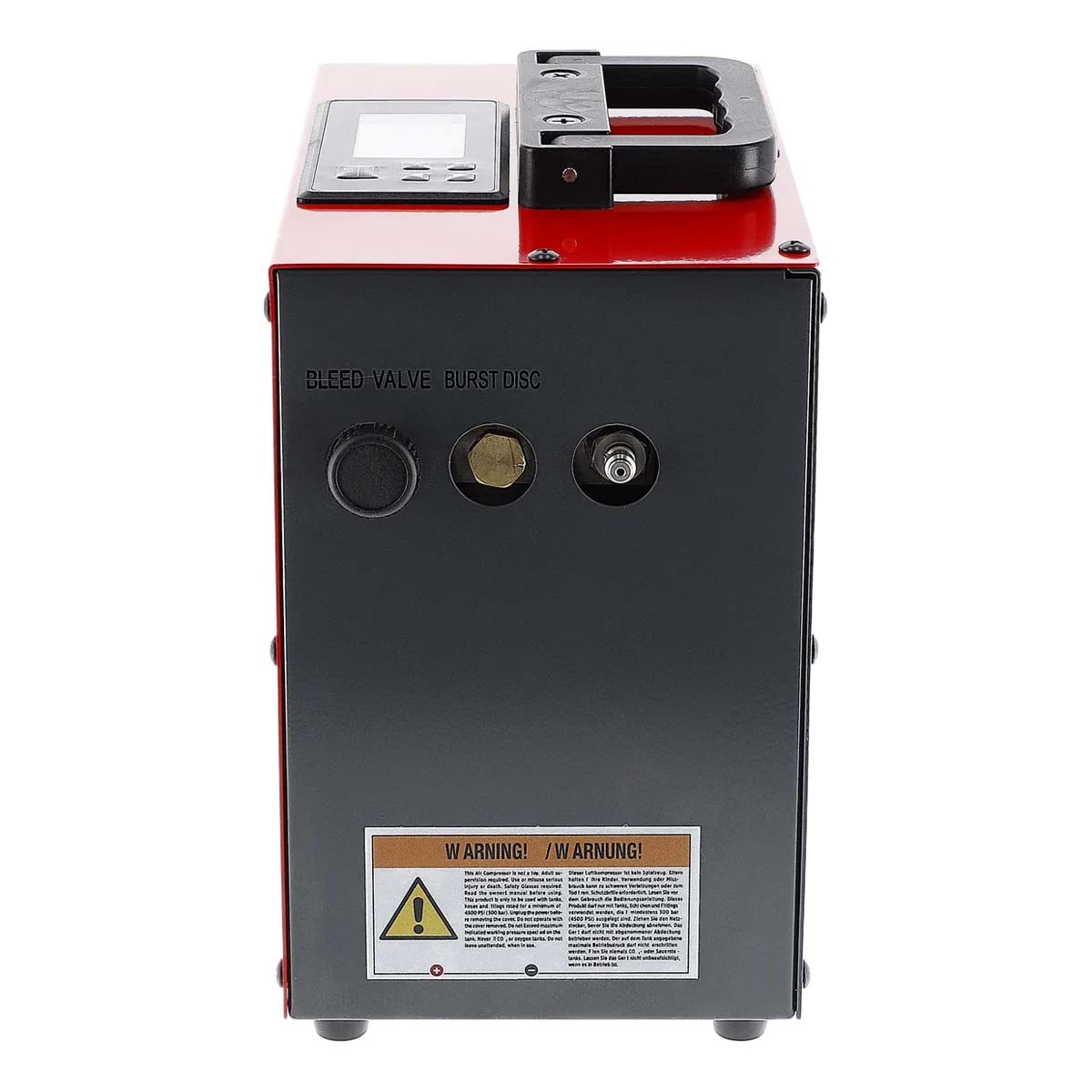 The compressor can fill PCP tanks up to a maximum pressure of 300 bar, making it suitable for most standard PCP airgun systems.