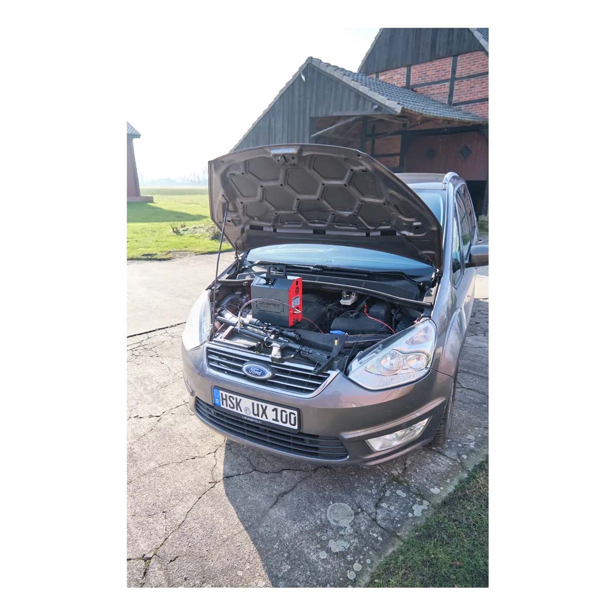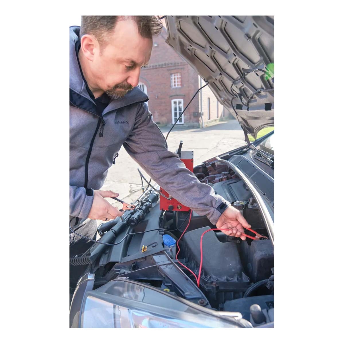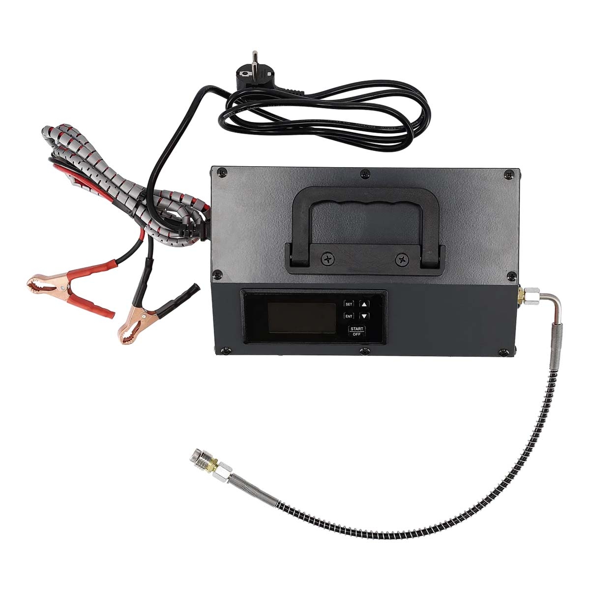 It can be powered via a 230V mains connection or a 12V vehicle connection, allowing use both at home and in the field.