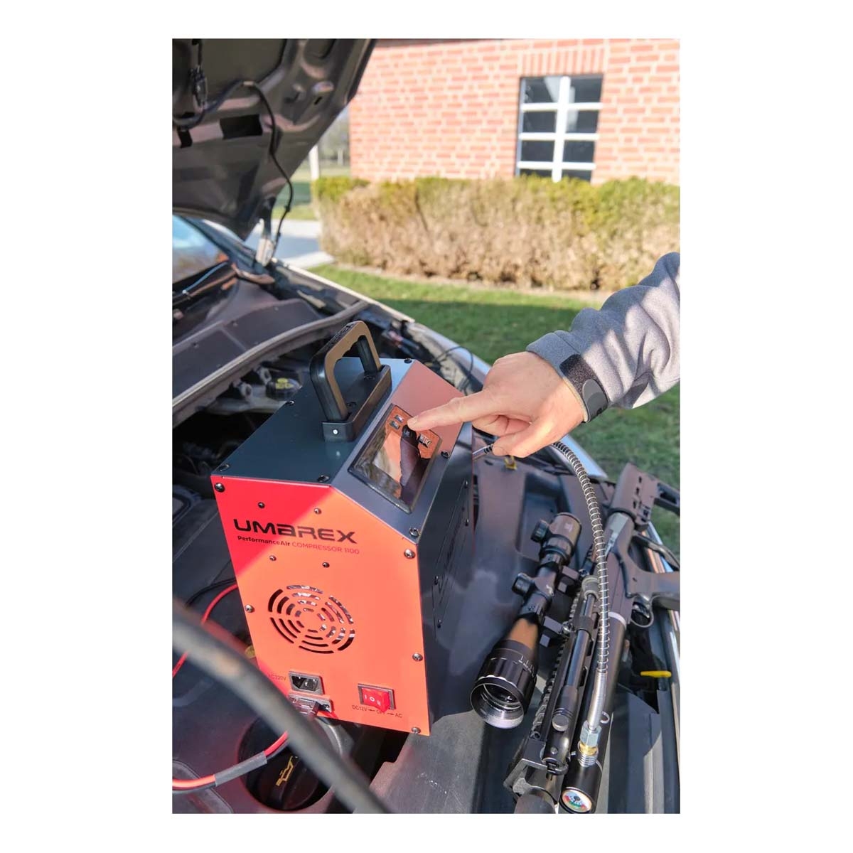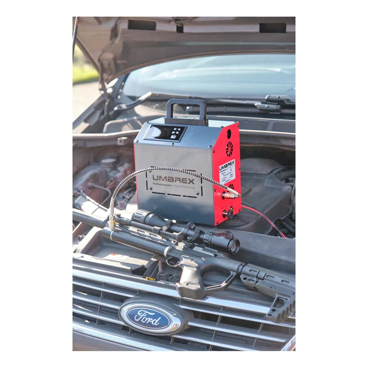The Umarex PAC 1100 PerformanceAir Compressor is a high-performance PCP compressor designed for shooters who require powerful, flexible air filling both at home and in the field. Engineered for dual-use operation, it can be powered via mains electricity or a 12V vehicle connection, making it equally suited to workshop setups and off-grid environments.