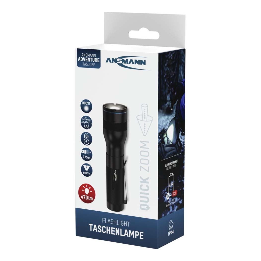 The ANSMANN Adventure 500BF LED Torch is a powerful and versatile lighting tool designed for outdoor users and everyday scenarios requiring strong illumination. Its high lumen output and extended beam range make it particularly well suited to walking, camping and general-purpose use in darker environments.